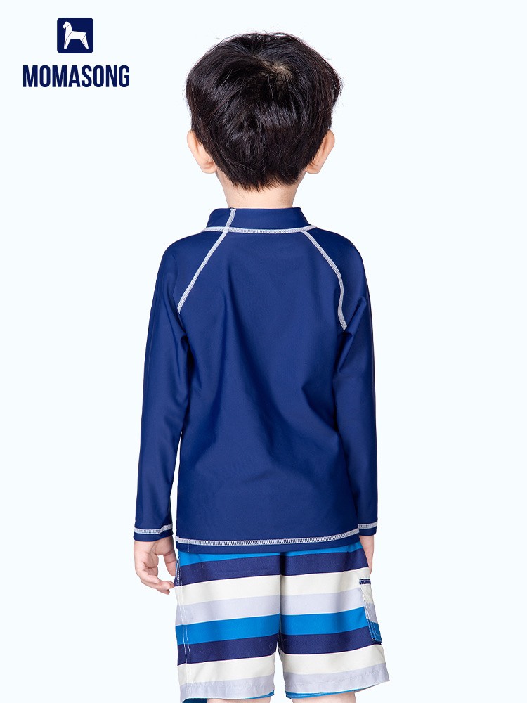Áo bơi dài bé trai, vải cao cấp chống nắng, xanh than, Momasong