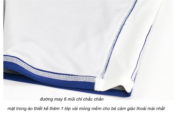BỘ BƠI CHỐNG NẮNG Thương hiệu : YUKE ( thương hiệu nổi tiếng đồ bơi China tiêu chuẩn xuất EU) Kiểu dáng : Dáng rời, khoá kéo trước Tính năng : Phù hợp cho các hoạt động như phơi nắng tắm biển/ bể bơi, trèo thuyền, lướt sóng, khoáng nóng … cũng như các hoạt động dưới nước Tác dụng : Chống 98% tia nắng có hại cho da, chỉ số UPF50++ Kháng Clo trong nước bể bơi Vải thoáng khí mau khô giúp cơ thể chống lạnh sau khi từ dưới nước lên ( chống hiện tượng nhiễm lạnh do ngấm ngược nước lạnh sau lên bờ) Bảo vệ da khỏi các sinh vật biển gây kích ứng như : sứa biển, sao biển,… Chống trầy sước da khi tham gia các hoạt động tập luyện và vận động ngoài trời Chất liệu : Vải chuyên dụng cho đồ bơi cao cấp Lycra (82% Nynol + 18% Spandex) Co giãn 4 chiều Vải kháng Clo và kháng khuẩn. Giúp da được bảo vệ tốt hơn khi bơi trong bể. Chất liệu tuân thủ tiêu chuẩn quốc tế loại A về quần áo trẻ sơ sinh và trẻ em Không chứa Fromaldehyd, huỳnh quang, và các chất có hại khác Vải xanh thân thiện với môi trường Thiết kế : Mặt trong khoá và đầu khoá kéo đều được lót vải mềm, mục đích tránh khoá tiếp xúc trực tiếp với da Quần cạp chun co giãn, có dây rút, Đáy quần có lót thêm 1 lớp vải mềm Quy trình máy may 4 mũi kim 6 đường chỉ, tạo ra sự chắc chắn, hình thức đẹp, bảo đảm tuyệt đối không rách vải khi vận động Công nghệ in sử dụng keo đặc biệt dùng cho trang phục đồ lặn, rất chắc chắn, không phai màu và chống rách tuyệt đối Lưu ý sử dụng và bảo quản : Do bộ bơi chất liệu vải co giãn, thường có nhiều màu sắc sặc sỡ khác nhau. Để tăng tuổi thọ, tính năng cũng như mẫu mã của bộ bơi, khi sử dụng nên lưu ý những điều sau : Tránh các hoạt động có ma sát cao như cầu trượt,.. vì chất vải tự nhiên co giãn nhiều rất dễ làm hỏng kết cấu sợi vải Khi bơi xong nên giặt càng sớm càng tốt, vì nước biển có muối, bể bơi có chất clo, kem chống nắng, các loại dầu đều có thể làm giảm tính đàn hồi của vải bơi Nếu không có điều kiện giặt luôn bằng nước giặt thì cũng nên tráng bộ bơi qua nước sạch rồi để nơi cho giáo nước Khi bộ bơi chưa khô không nên để chung cùng quần áo khác Tốt nhất chỉ nên giặt bằng tay Tránh chất tẩy rửa mạnh (tốt nhất nên giặt bằng dầu gội hoặc sữa tắm ) Không phơi dưới ánh nắng trực tiếp Không là (ủi), sấy khô Đổi hàng trong 5 ngày sau khi nhận với lỗi của nhà sản xuất Chỉ nhận đổi hàng với sản phẩm chưa qua sử dụng Chỉ đổi sang các sản phẩm có giá trị bằng hoặc cao hơn Quý khách vui lòng chụp ảnh / quay video khi nhận hàng để được hỗ trợ tốt nhất. Vận Chuyển : Thời gian dự kiến 2-5 ngày (tuỳ khu vực ) sau khi shop giao cho đơn vị vẩn chuyển Đối với khách tại các quận nội thành Hà Nội muốn giao gấp (1-2 tiếng), nhận hàng trong ngày, lên đơn Hoả Tốc. Sau khi lên đơn bấm mục Theo Dõi Đơn Hàng để xem thời gian và quá trình nhận Bongzo - Cam kết chỉ bán hàng CHÍNH HÃNG Xem hàng trực tiếp tại : 25 Nguyễn Chí Thanh / Ba Đình / Hà Nội Ship toàn quốc, nhận hàng kiểm tra trước Nhận hàng kiểm tra trước khi thanh toán web : https://shopbongzo.com Hotline / Zalo : 094 6886 012 - 034 994 0705 Map shop : https://maps.app.goo.gl/N1WBJNvGUfo6o1jp7?g_st=com.google.maps.preview.copy325.000₫