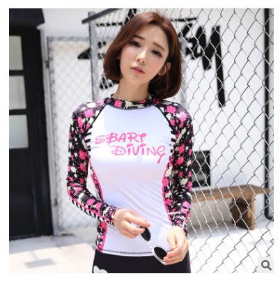 Áo bơi dài nữ Trắng, tay đen hồng D-45 Sbart
