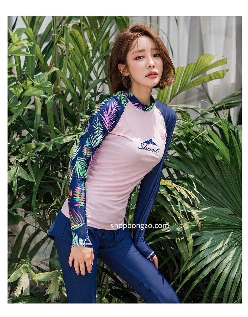 Áo bơi nữ dài tay, xanh kéo khoá, chống nắng UPF 50++, kháng Clo Sbart 9023