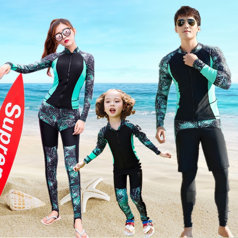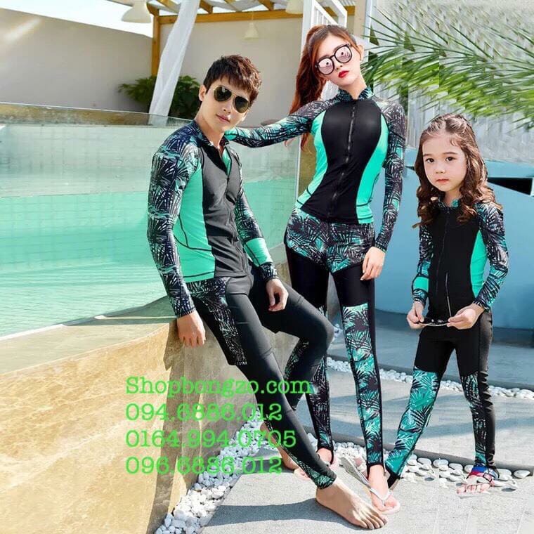 Áo bơi nữ dài đen xanh lá, kéo khoá, M781