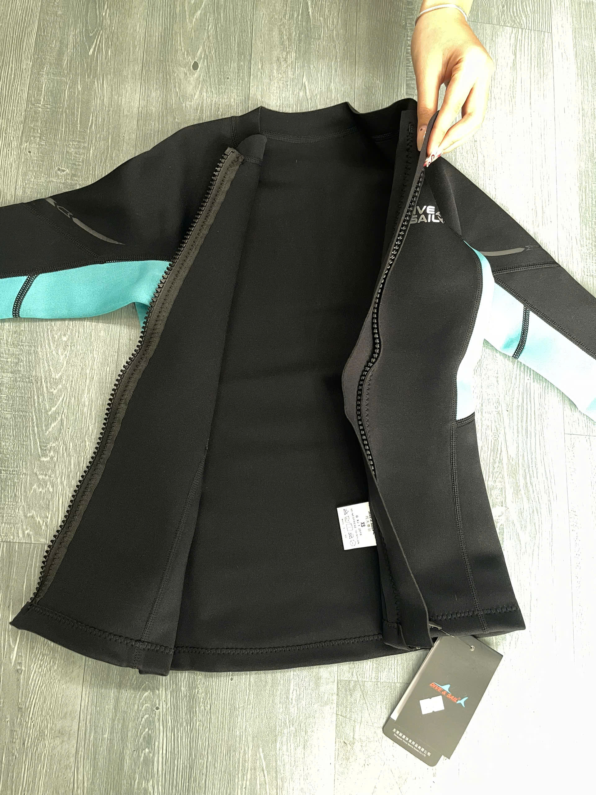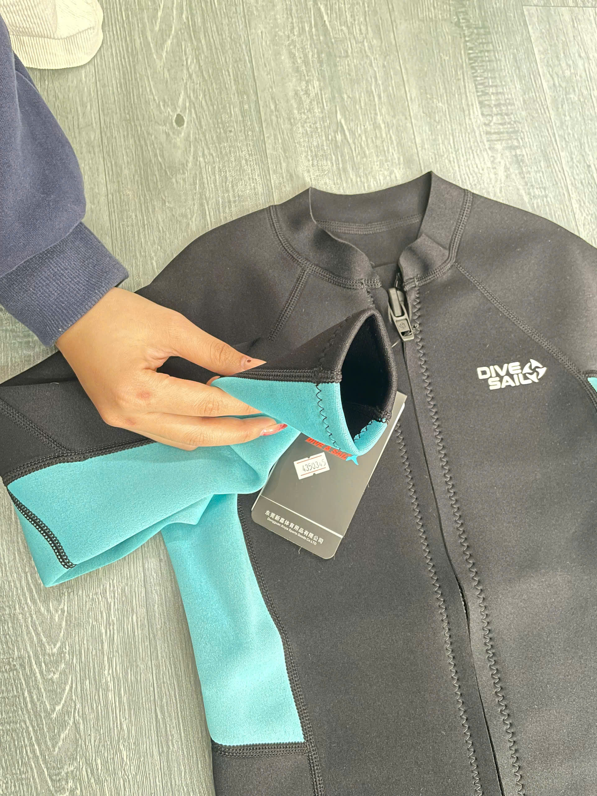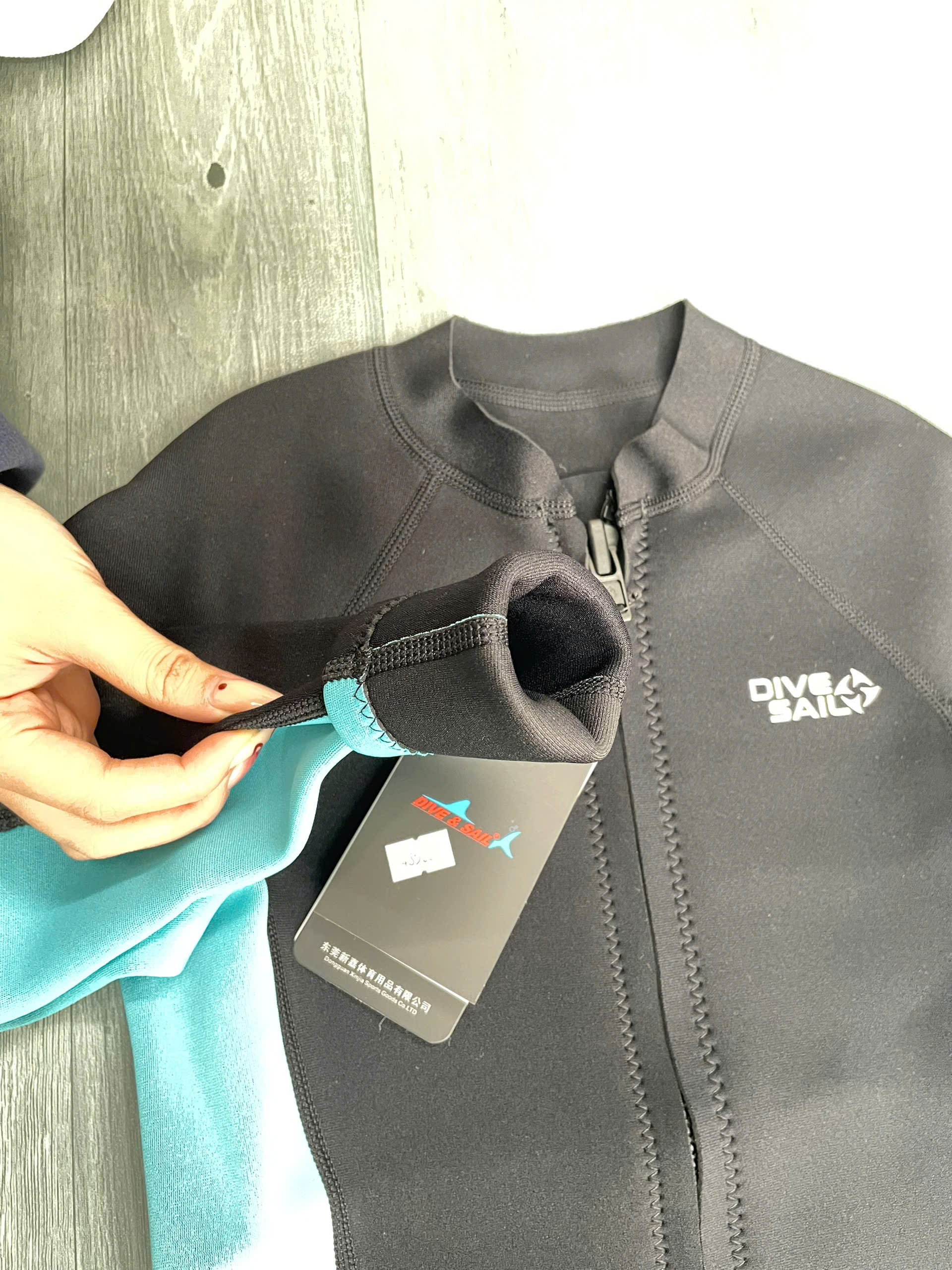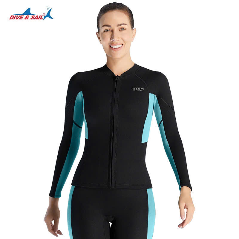 Bộ bơi nữ giữ nhiệt, dài tay, màu đen xanh, vải dày 1.5mm, Dive Sail