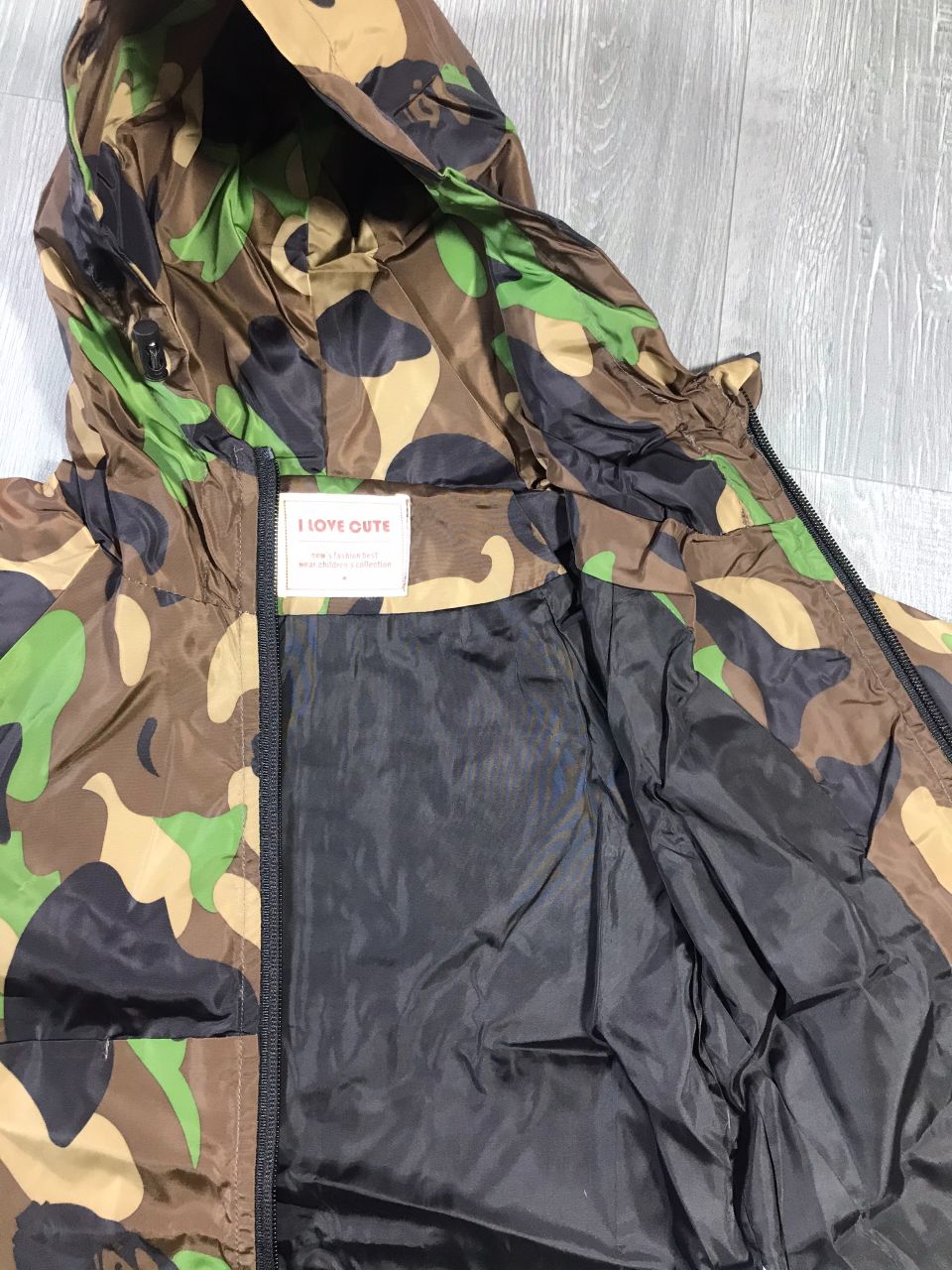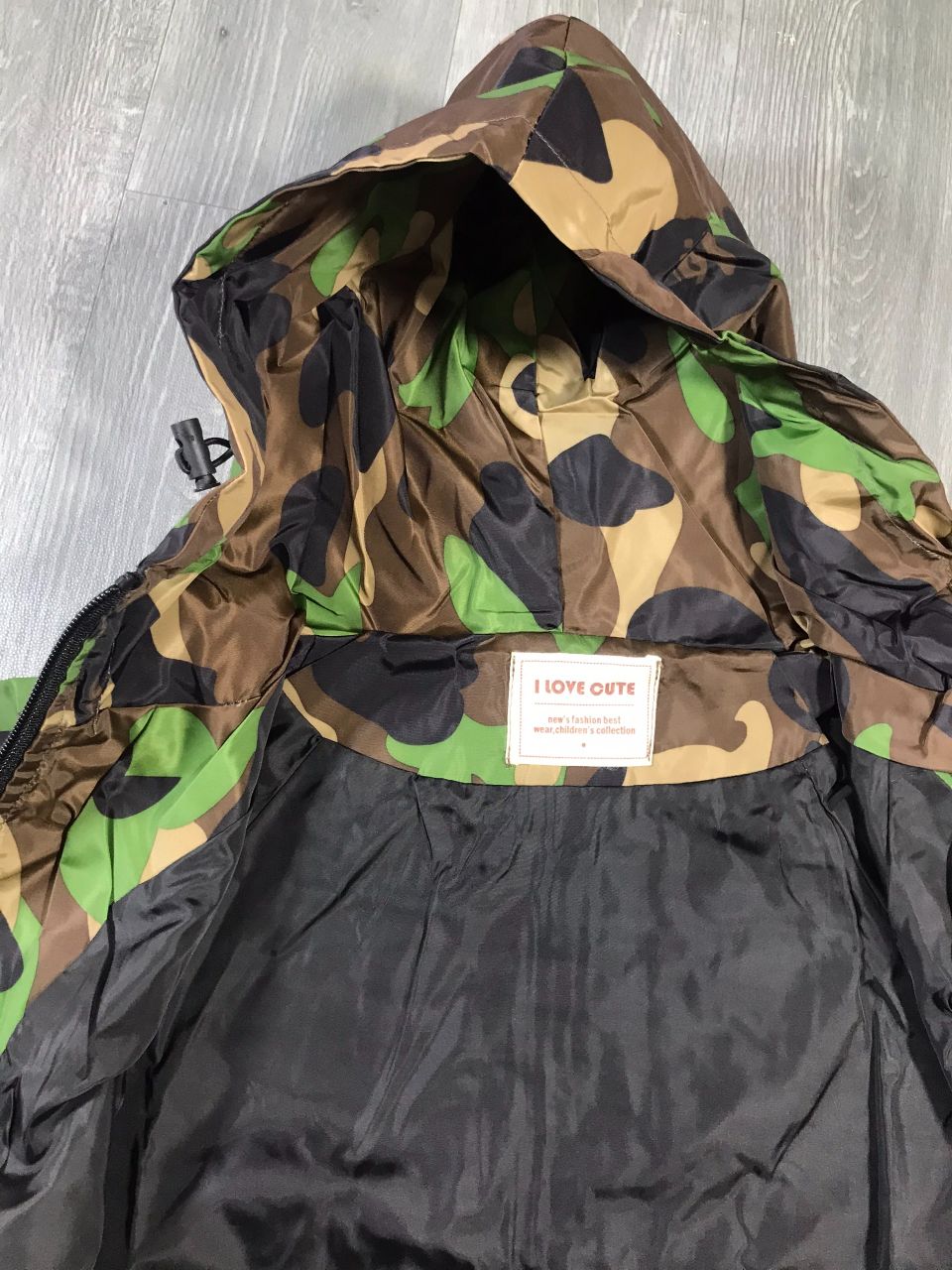 Đặc điểm : kéo khóa, mũ và gấu có dây rút chống gió.