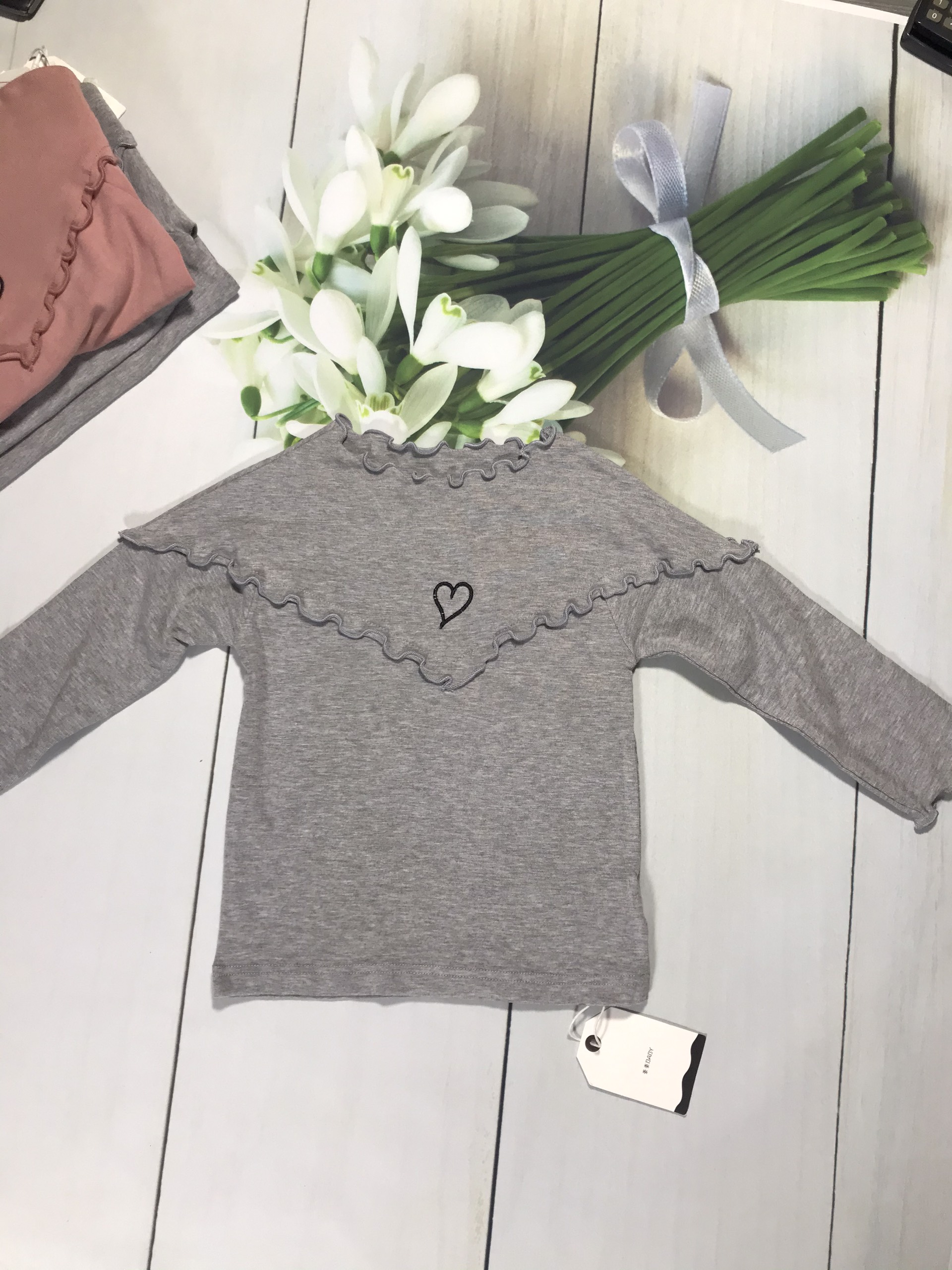 Áo thun dài cổ bèo, tim ChongChong-màu ghi