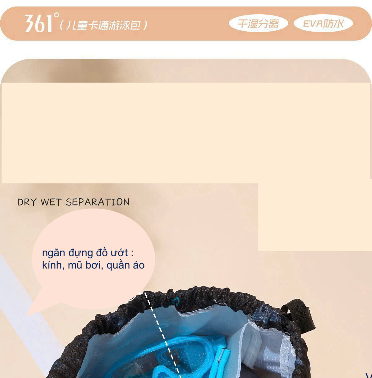 Túi bơi trẻ em 361, đựng đồ chống nước, đeo vai, nhiều ngăn, đi bơi, biển, du lịch