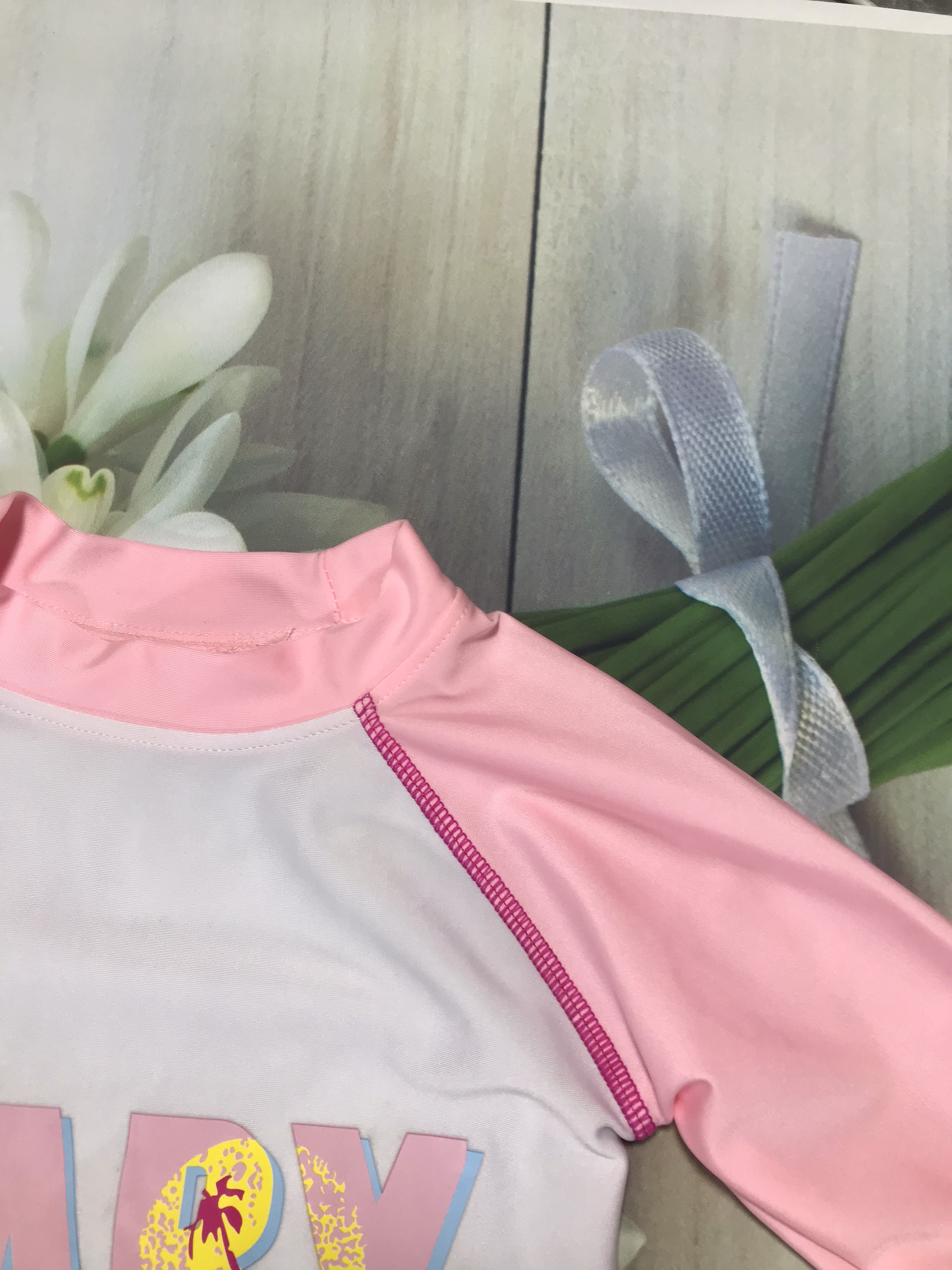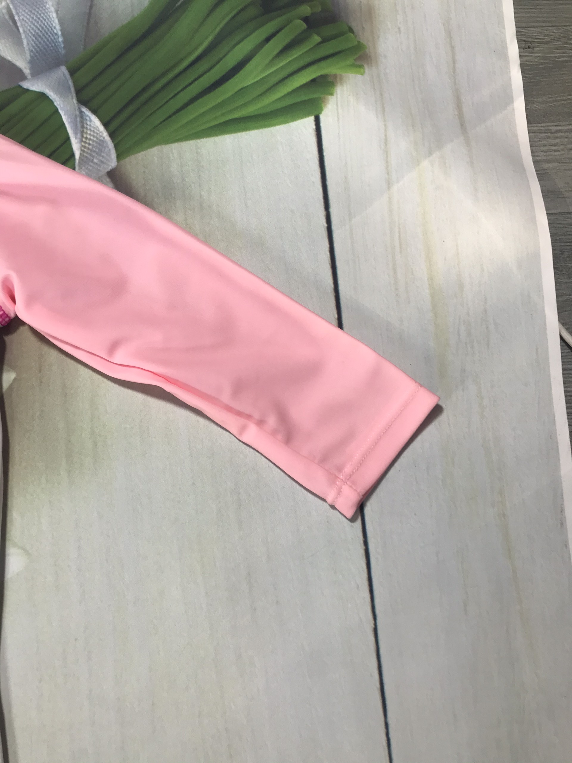 Bộ bơi bé gái dài tay, vải chống nắng UPF 50+ Momasong (Korea), hồng trắng