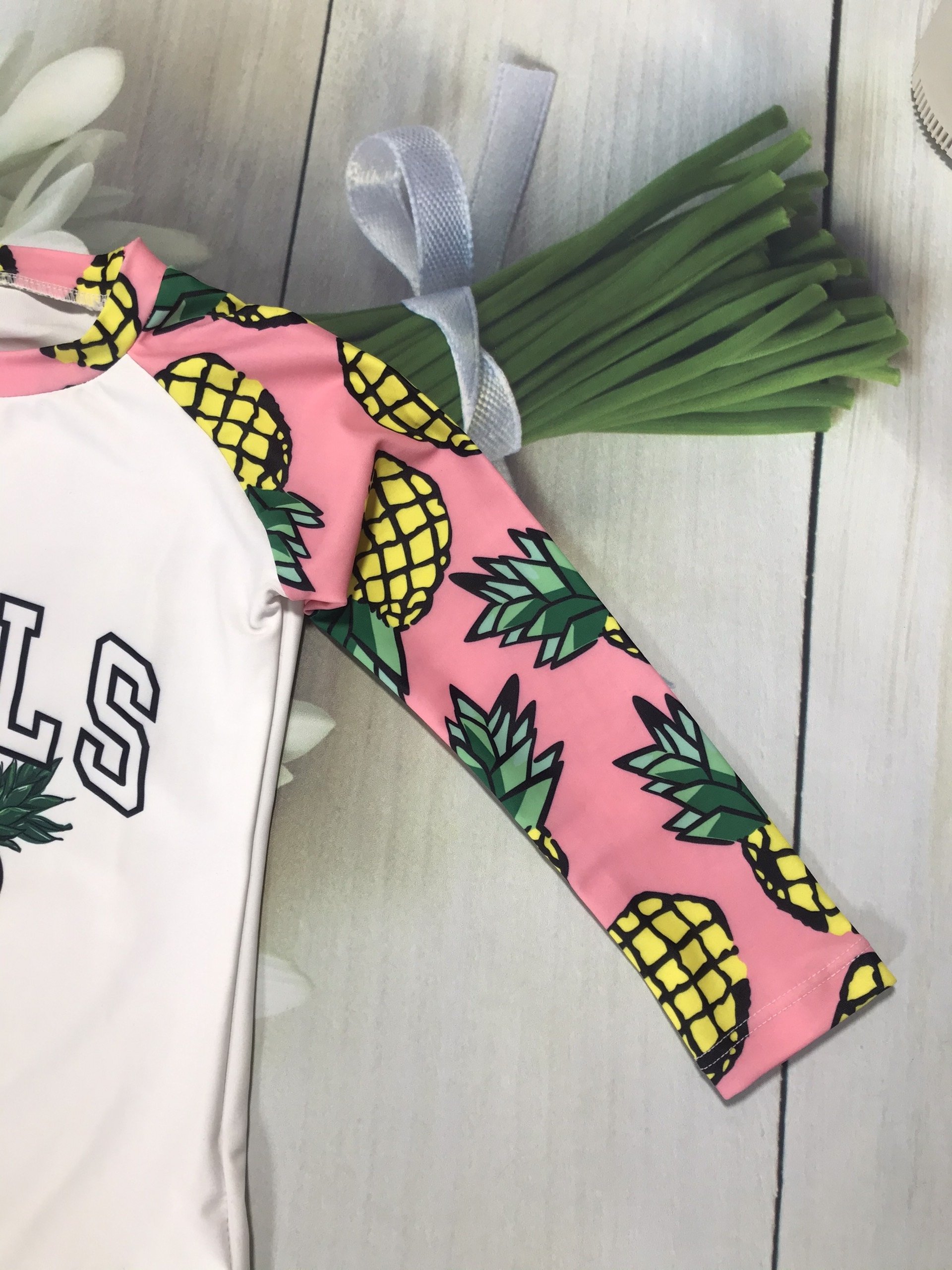 Bộ bơi bé gái dài tay, vải chống nắng UPF 50+ Momasong (Korea), hồng trắng