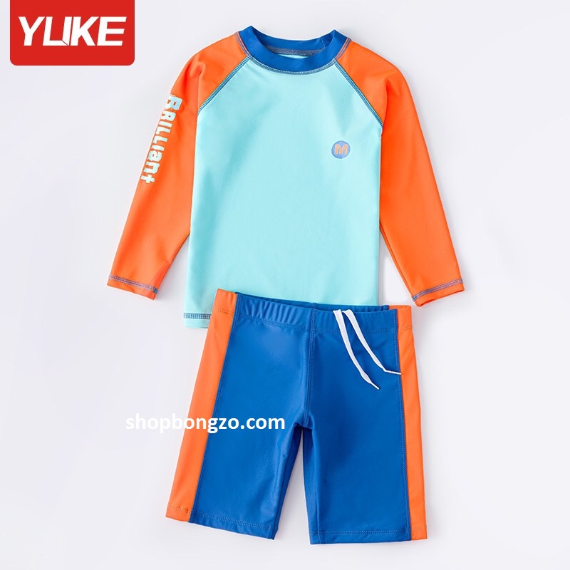 Bộ bơi chống nắng dài xanh, tay cam Yuke