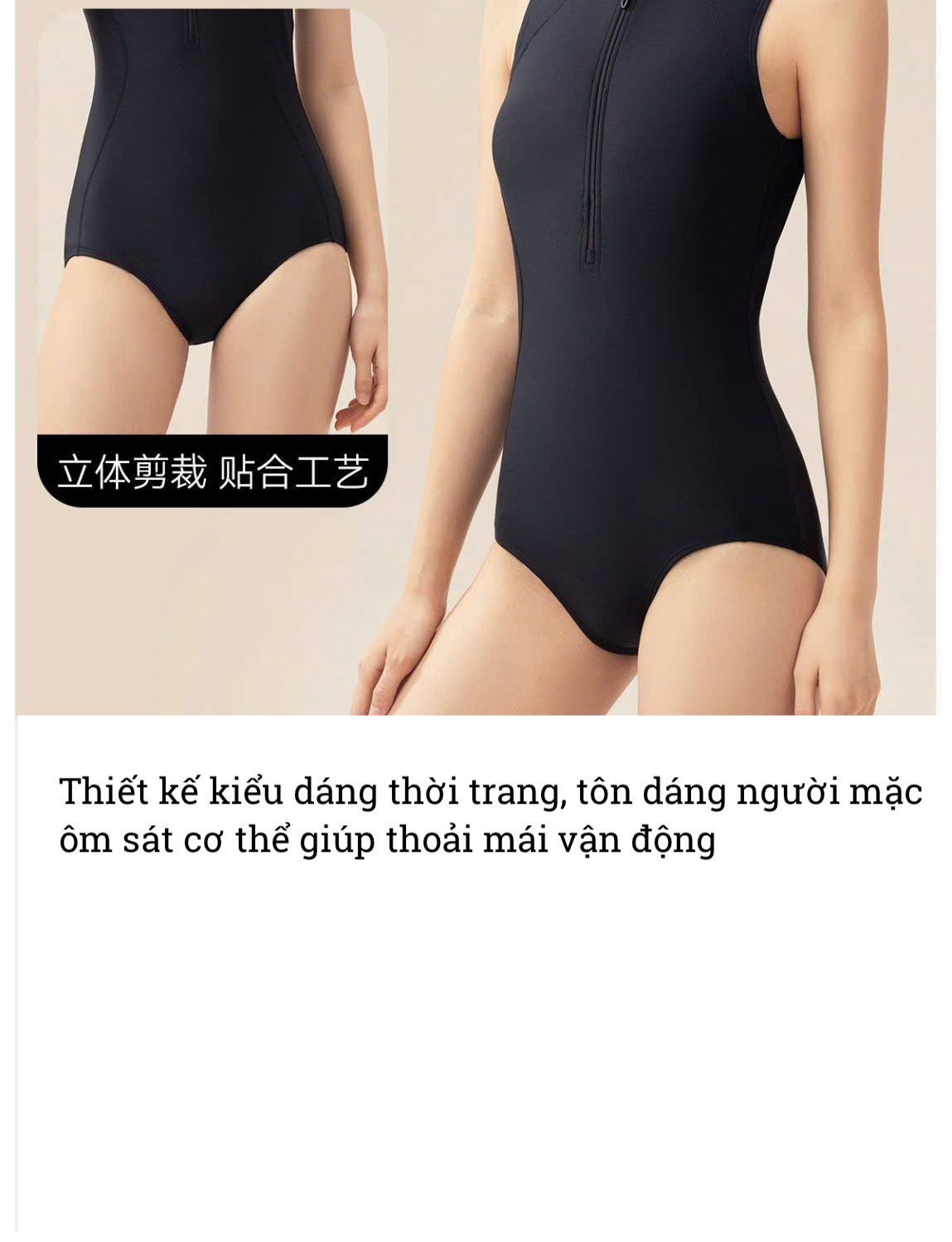 Bộ bơi 361 nữ, liền thân tôn dáng, màu đen thời trang, co giãn thoáng khí