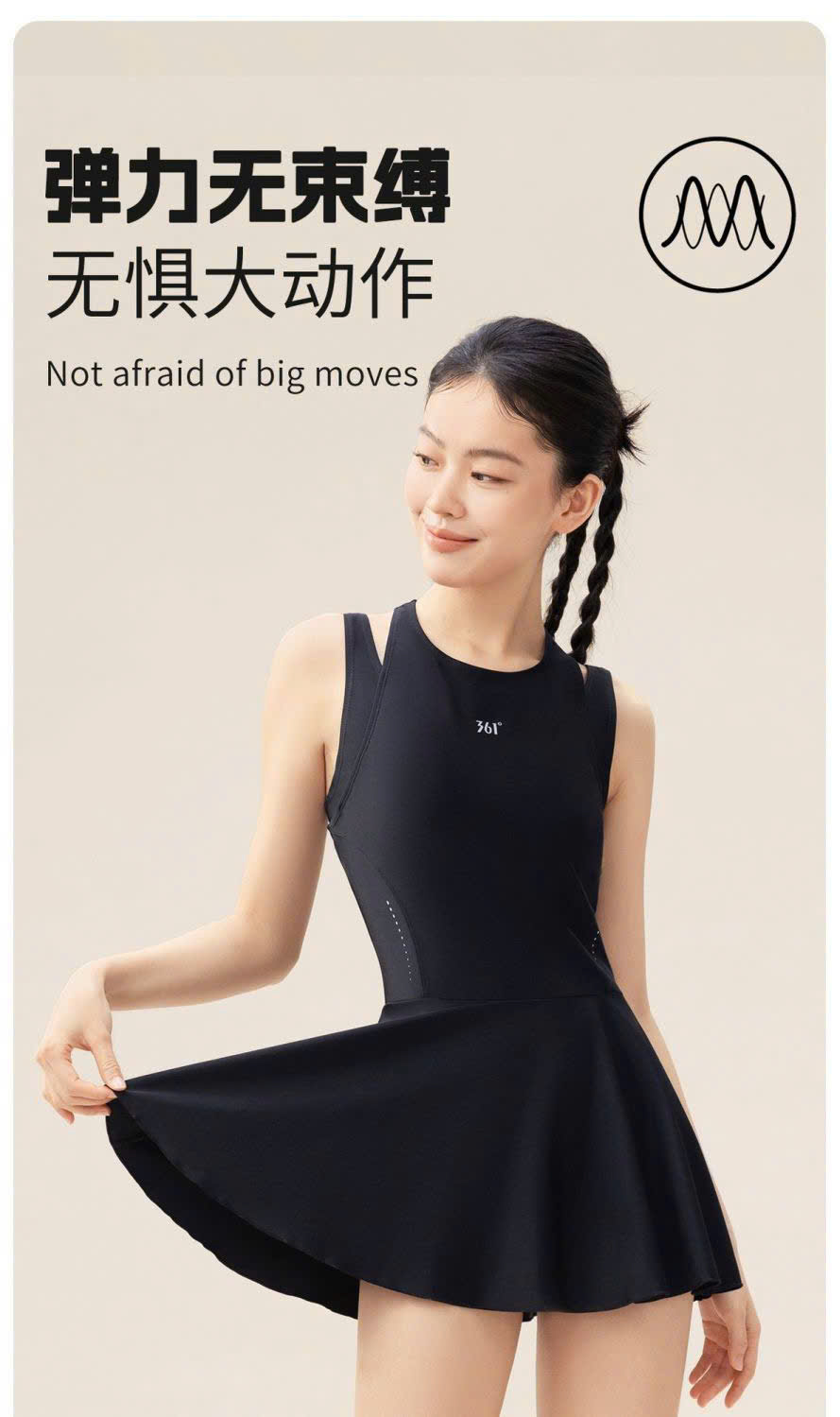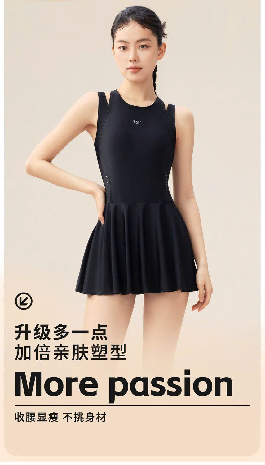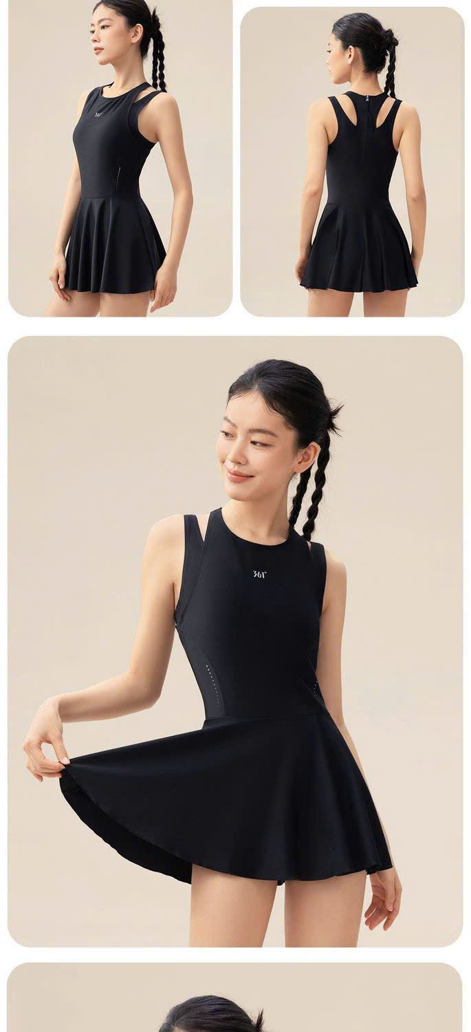 Bộ bơi 361 nữ, mẫu mới dáng liền, thon gọn tôn dáng, màu đen, liền chân váy