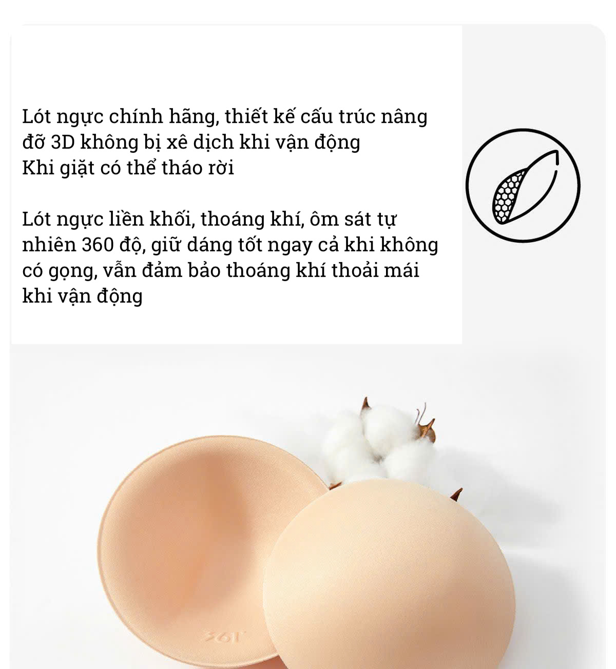 + Lót ngực liền khối, thoáng khí, ôm sát tự nhiên 360 độ, giữ dáng tốt ngay cả khi không có gọng, vẫn đảm bảo thoáng khí thoải mái khi vận động