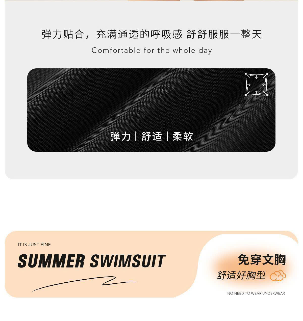 + Vải đồ bơi cao cấp Lycra (82% Nynol 18% Spandex), mềm mại, co giãn 4 chiều
