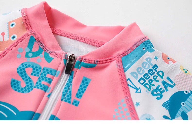 Bộ bơi bé gái dài tay, vải chống nắng UPF 50+ Momasong (Korea), hồng trắng