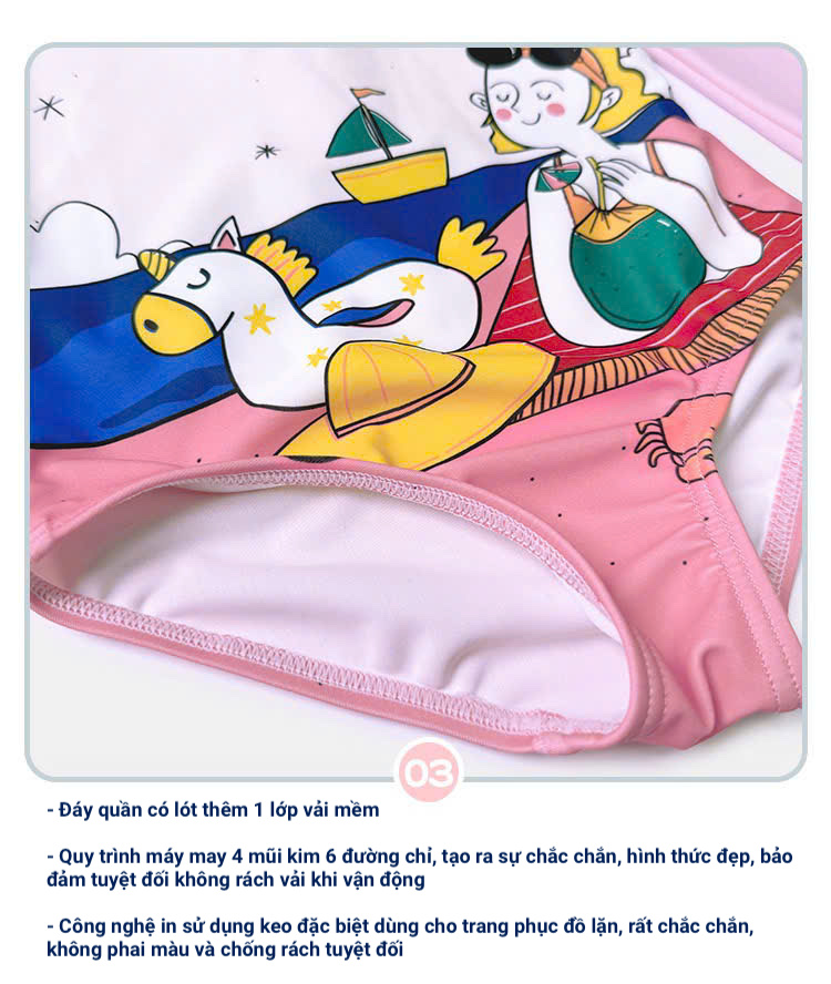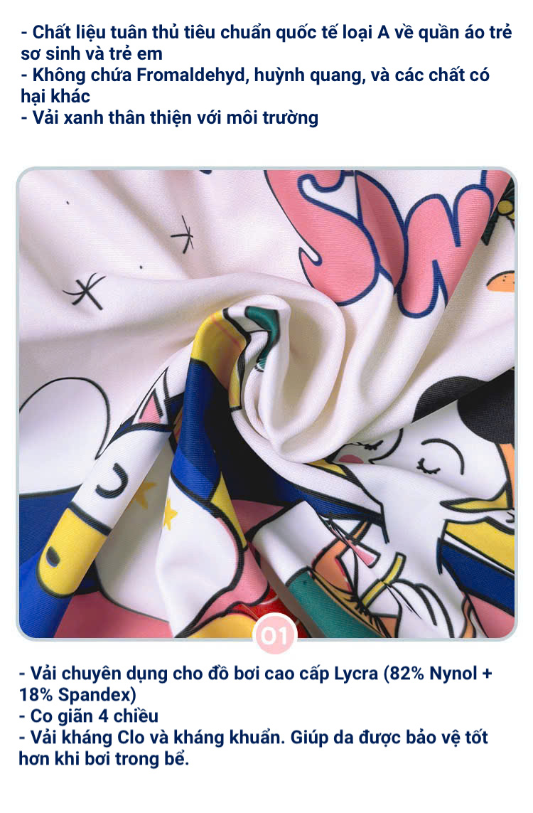 - Vải kháng Clo và kháng khuẩn. Giúp da được bảo vệ tốt hơn khi bơi trong bể.