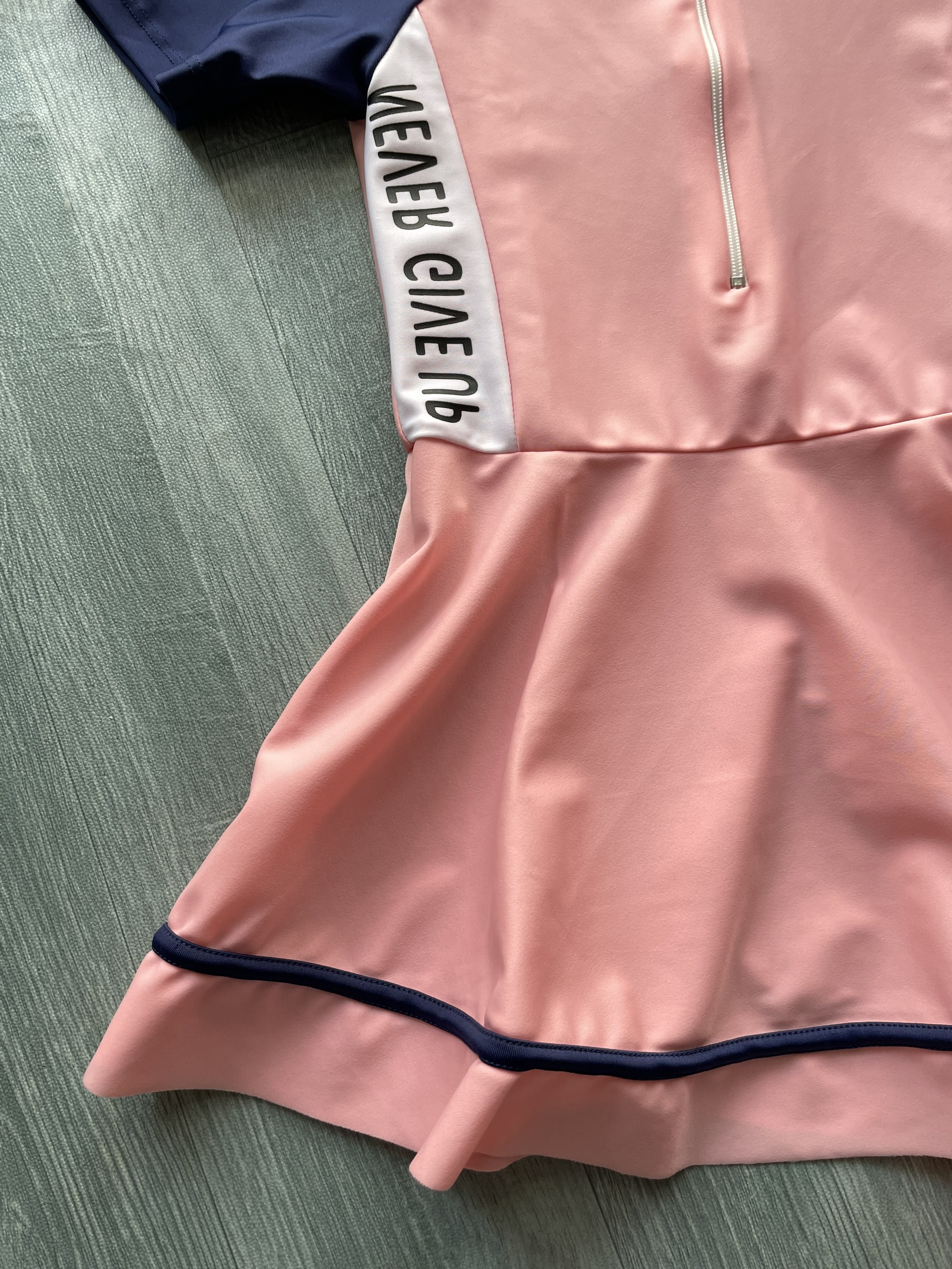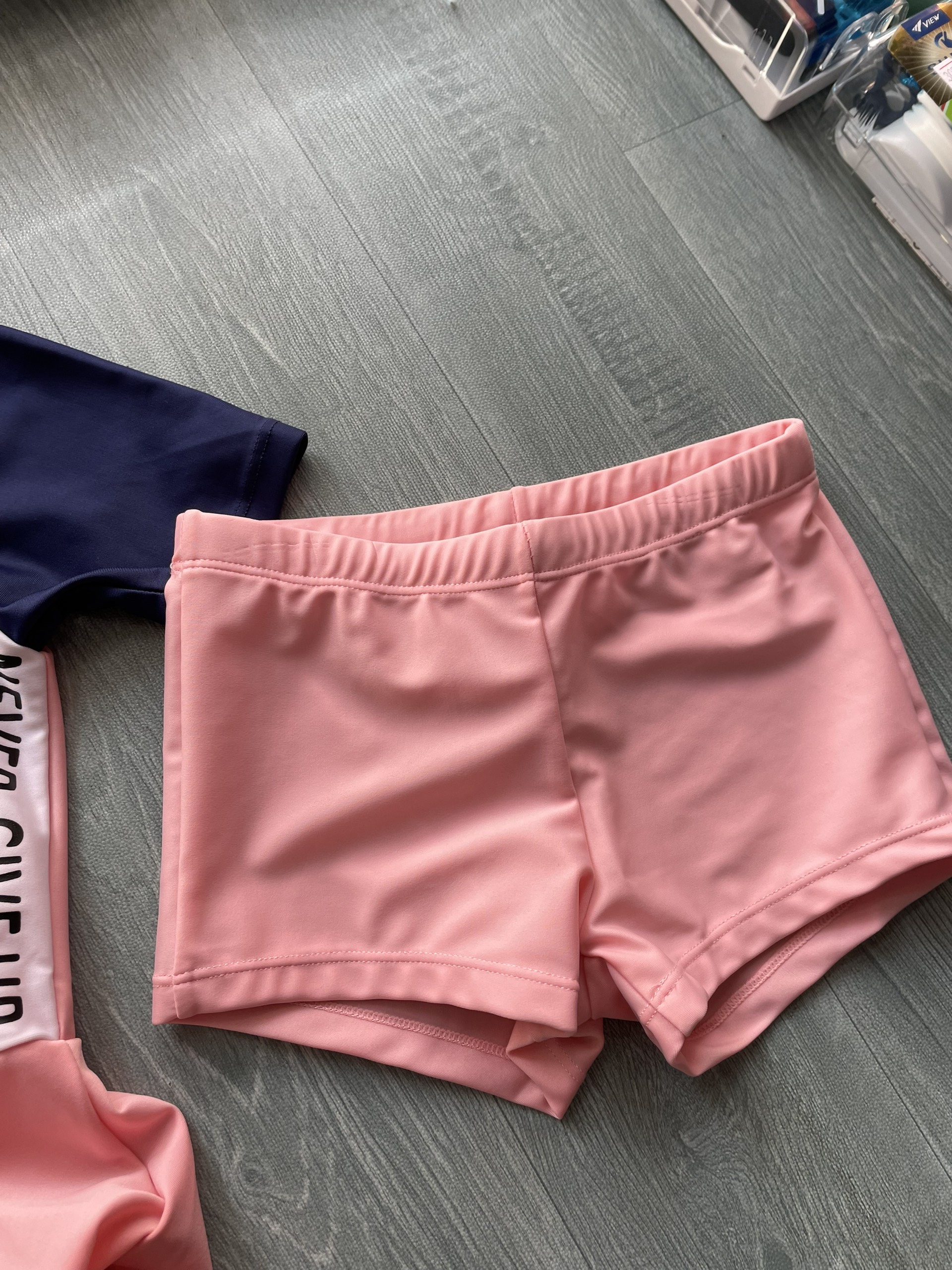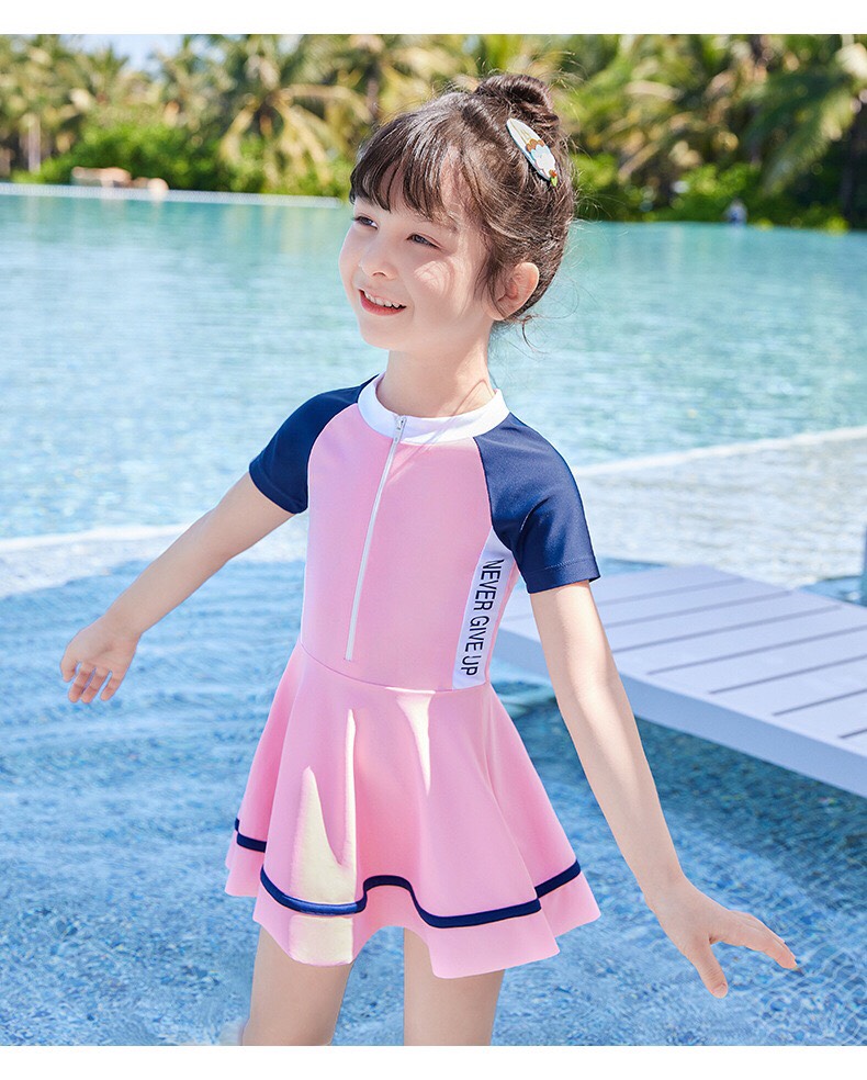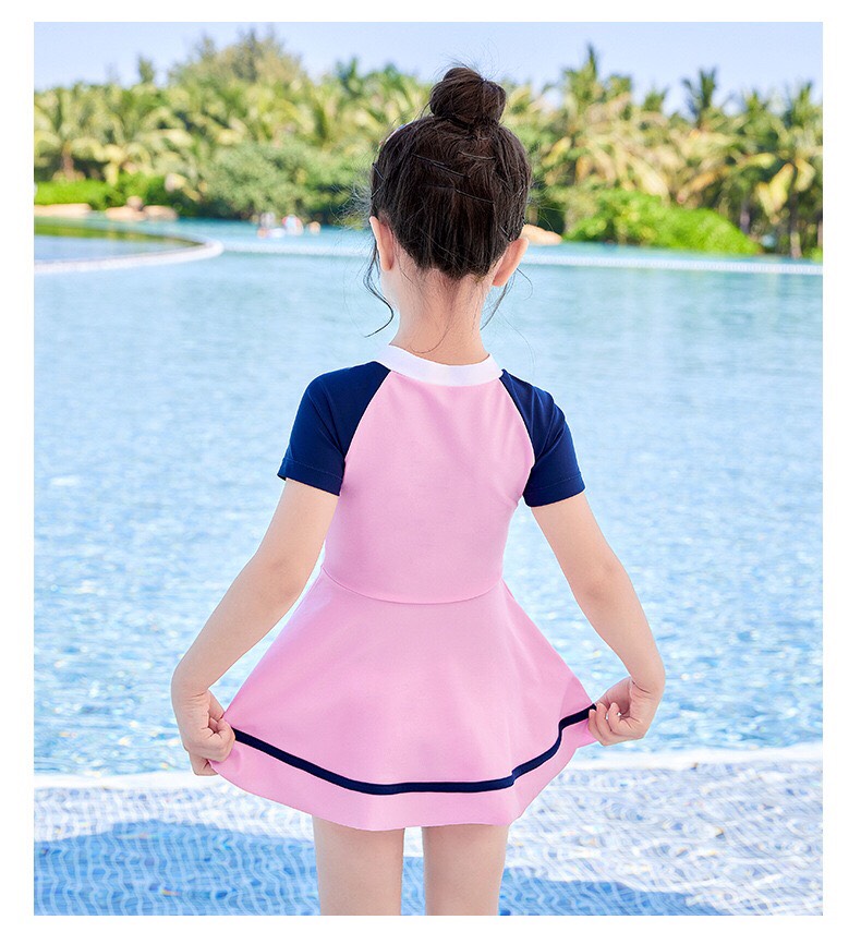 Bộ bơi bé gái cộc liền chân váy, hồng tay than 32626Y