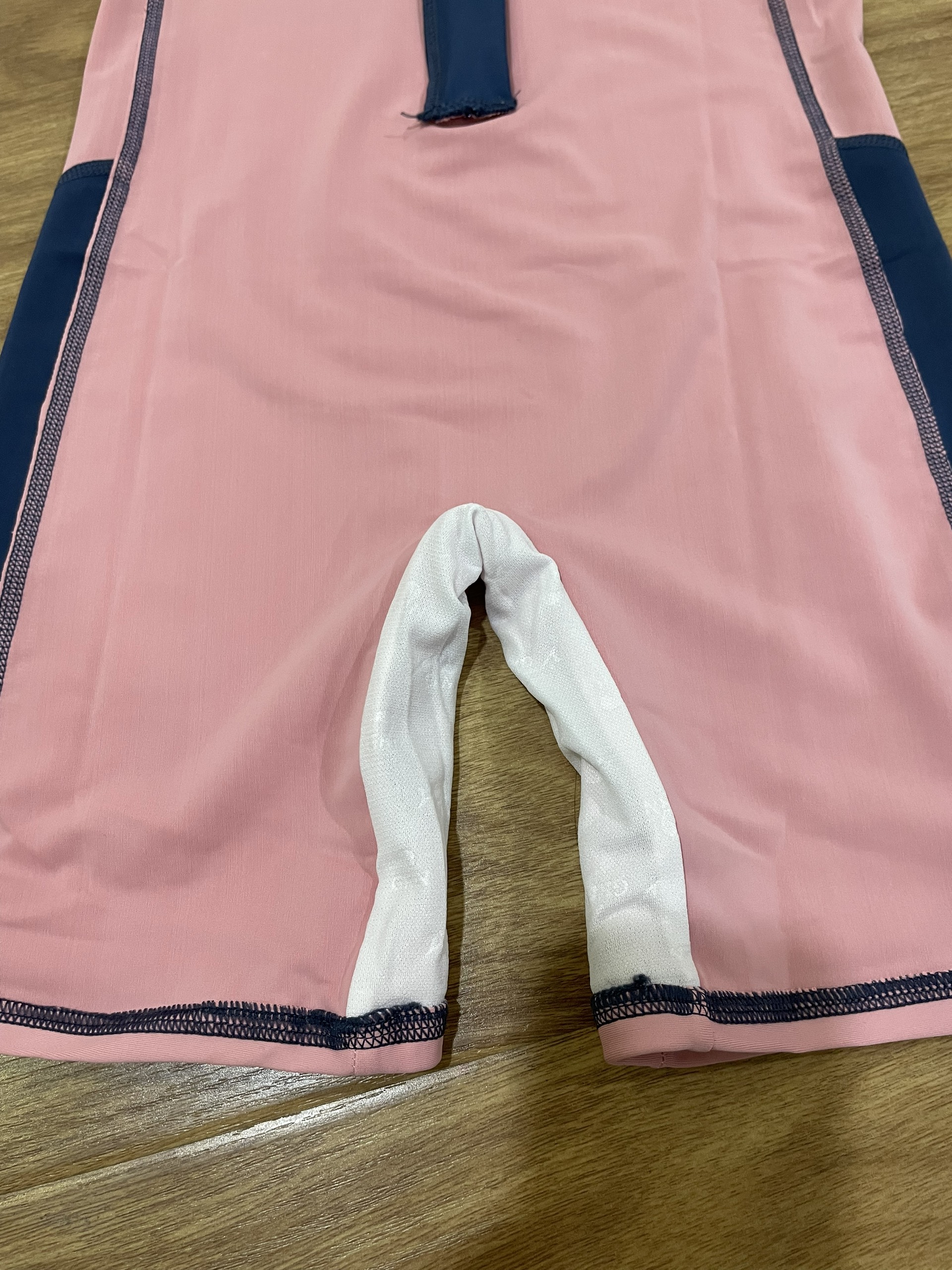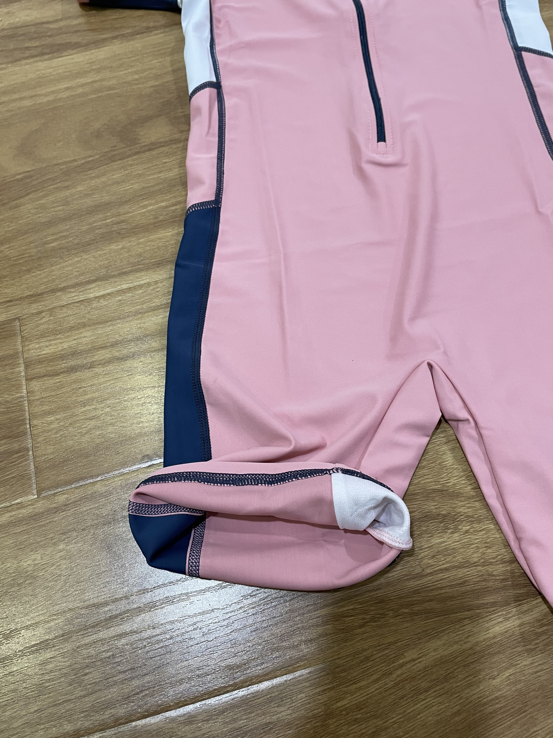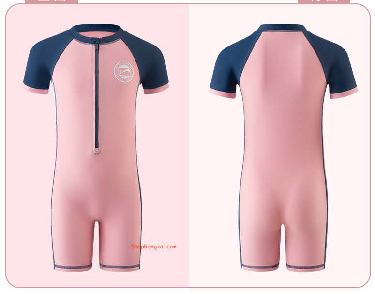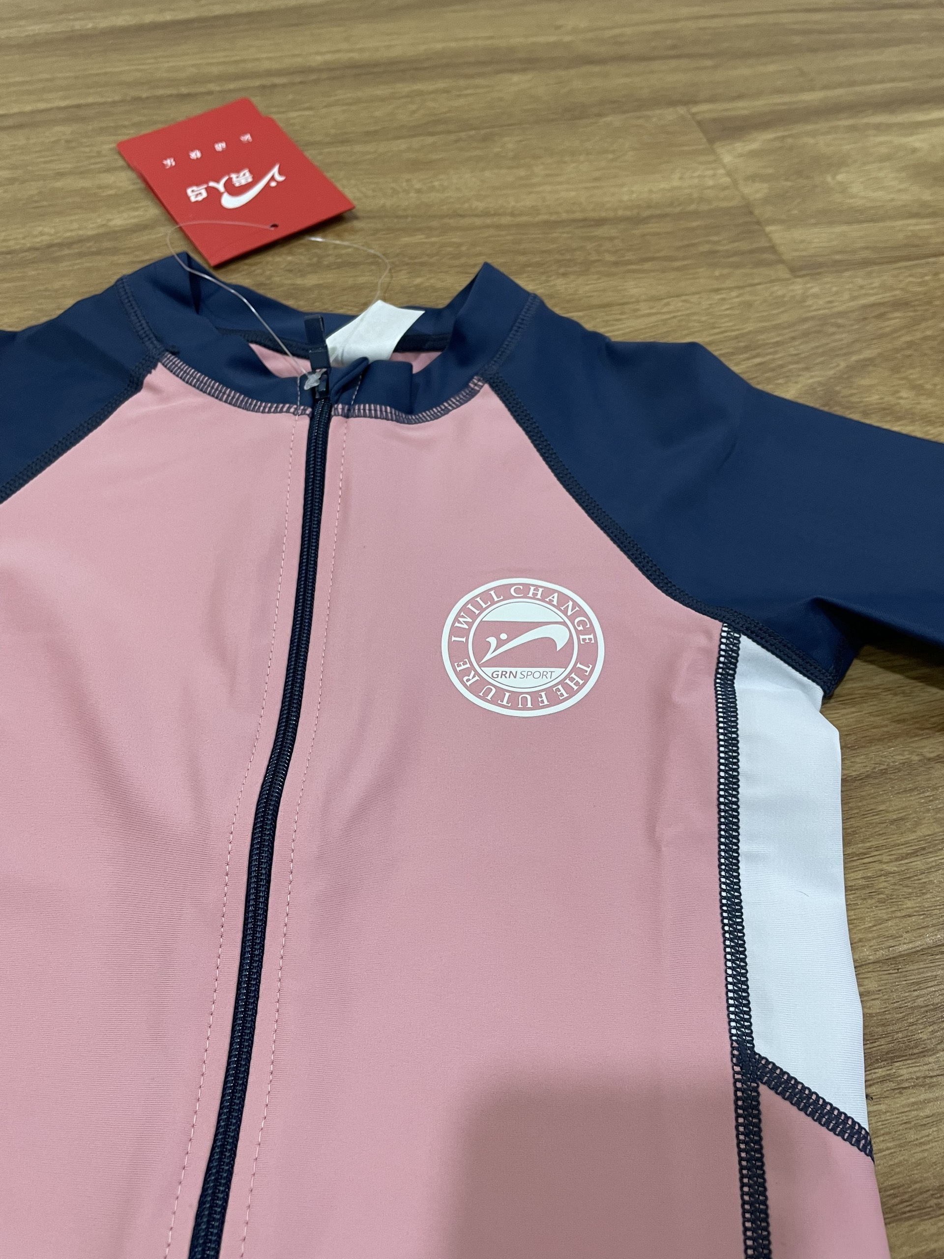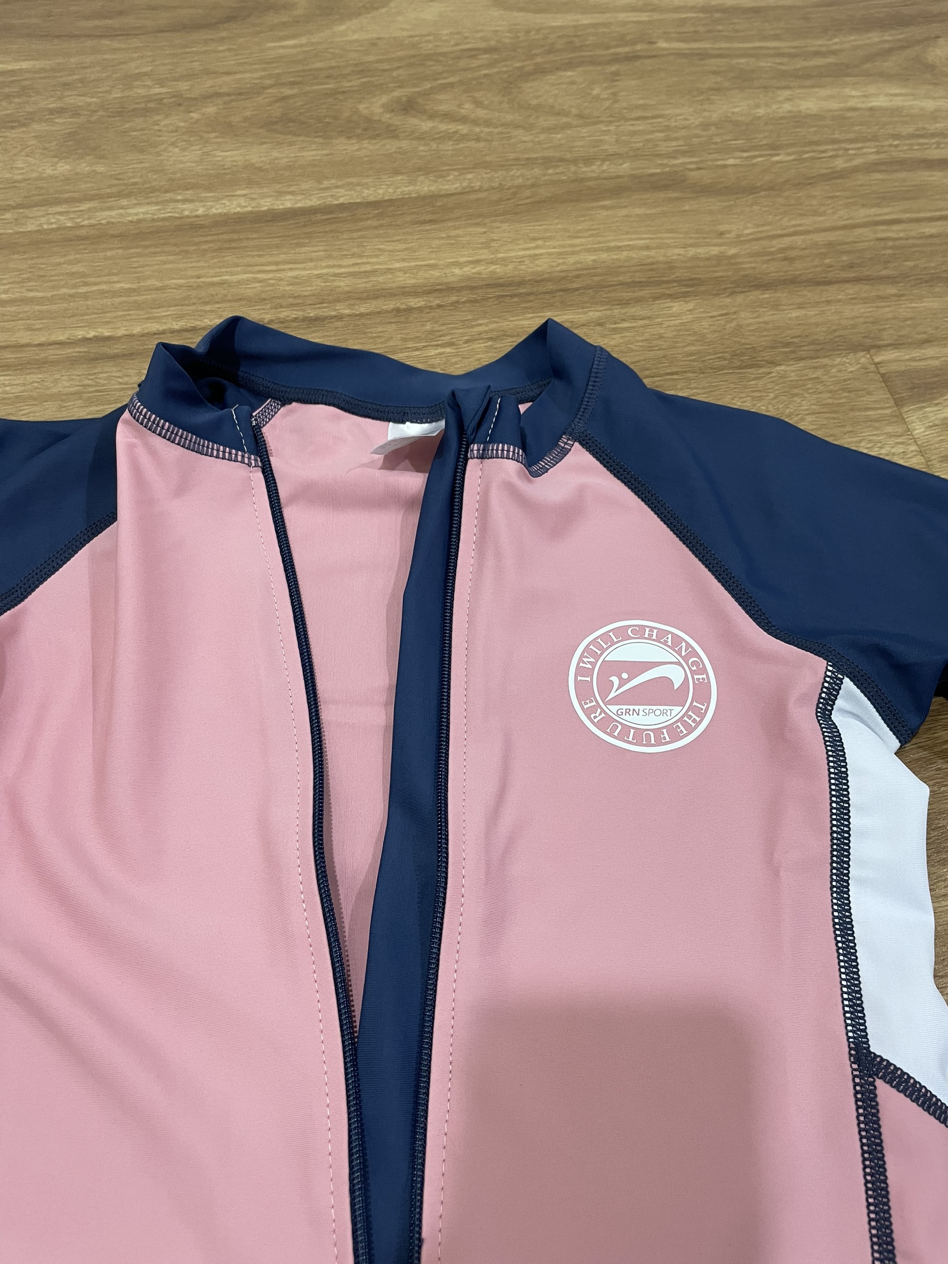 Bộ bơi bé gái cộc liền, hồng tay than, YUKE
