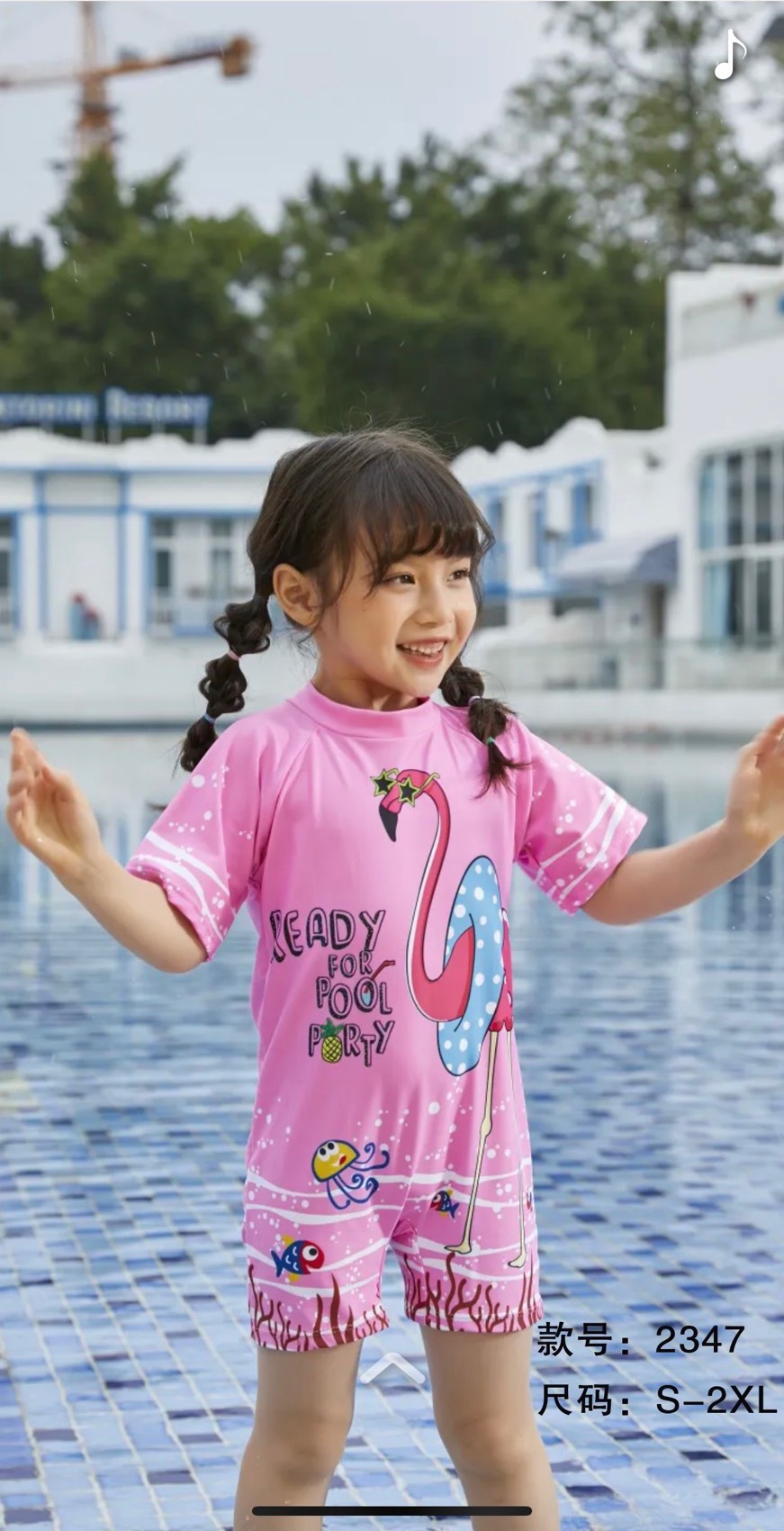 Bộ bơi bé gái cộc liền, màu hồng, hình cò -2347