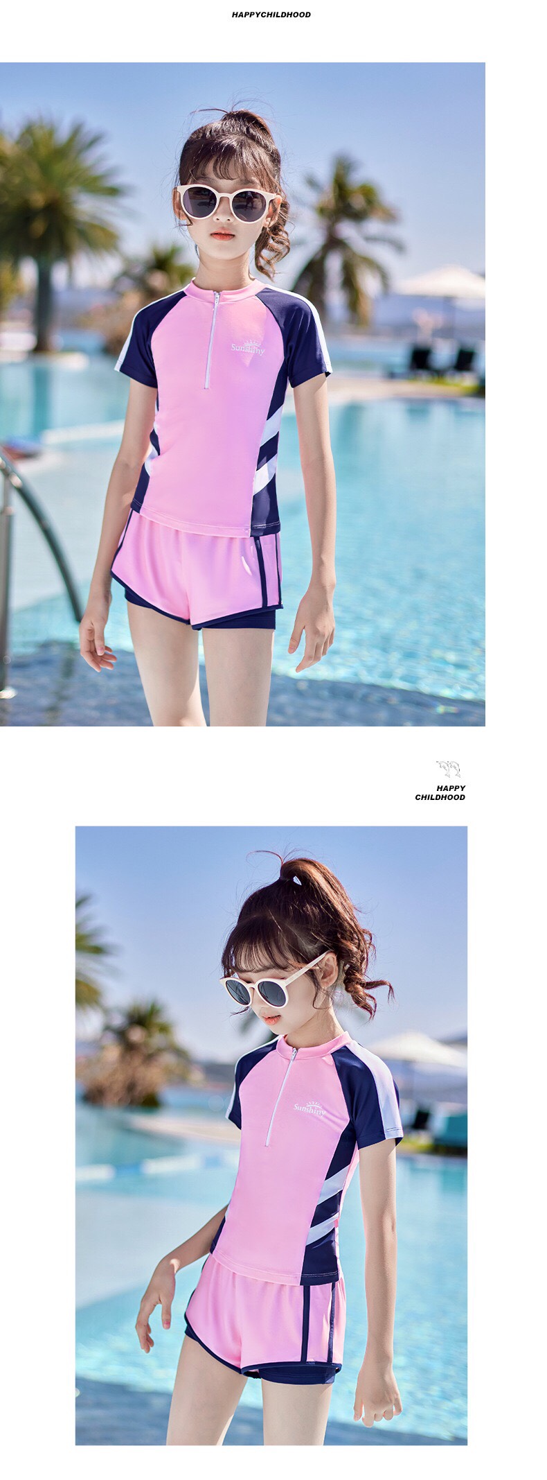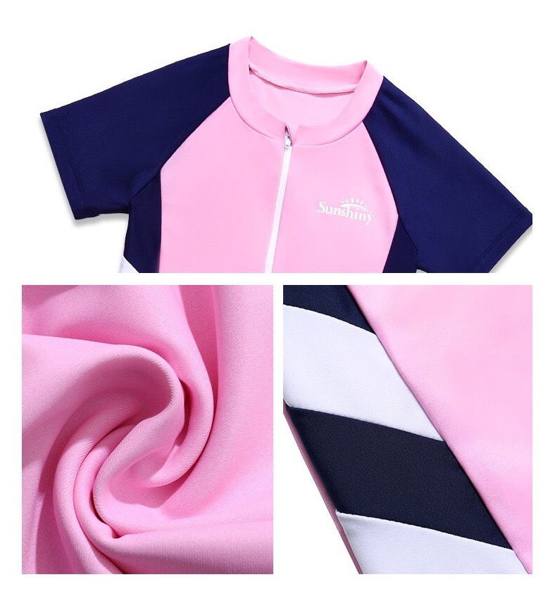 Bộ bơi bé gái cộc tay, hồng tay than, quần đùi rời Sunshiny 32003