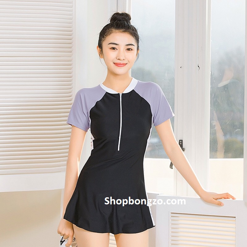 - Kiểu dáng : Áo cộc liền chân váy, kèm quần bơi rời dáng đùi.