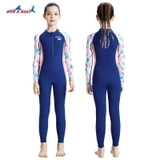 Bộ bơi bé gái, vải chống nắng UPF 50+, kháng Clo, dáng dài liền, màu than tay trắng, Dive&Sail