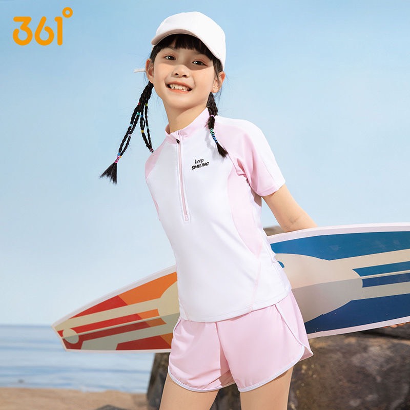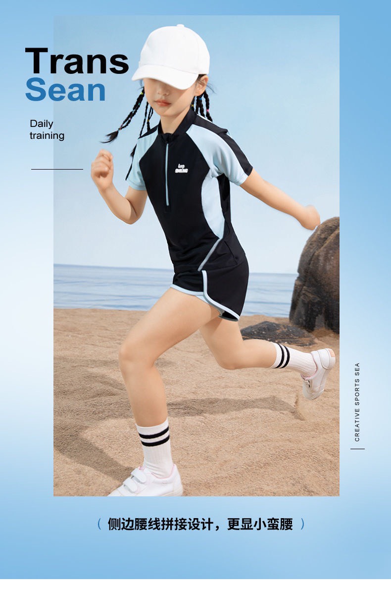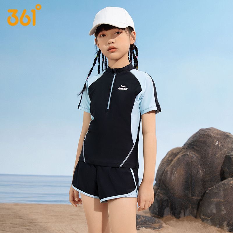 Bộ bơi bé gái cộc tay, màu đen, vải chống nắng, quần 2 lớp, Keep, 361