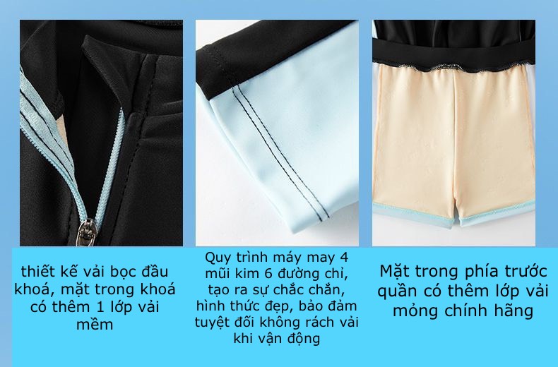 Bộ bơi bảo vệ da khỏi ánh nắng & vải mau khô chống lạnh.