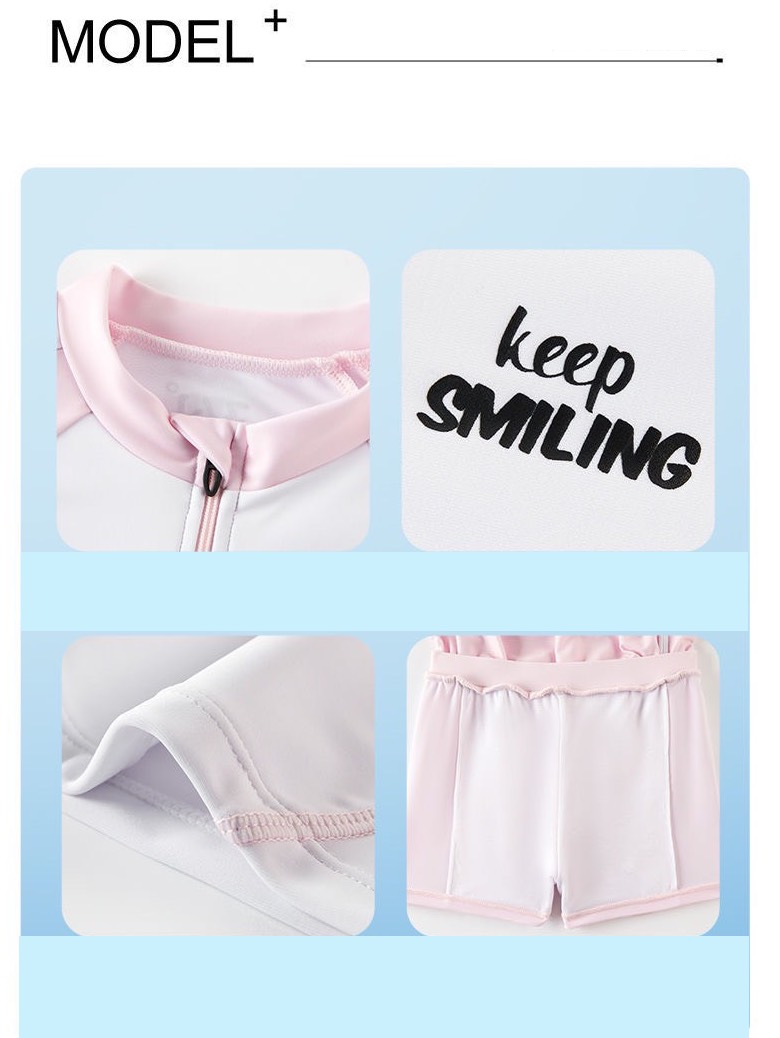 Bộ bơi bé gái dài tay, vải chống nắng UPF 50+ Momasong (Korea), hồng trắng