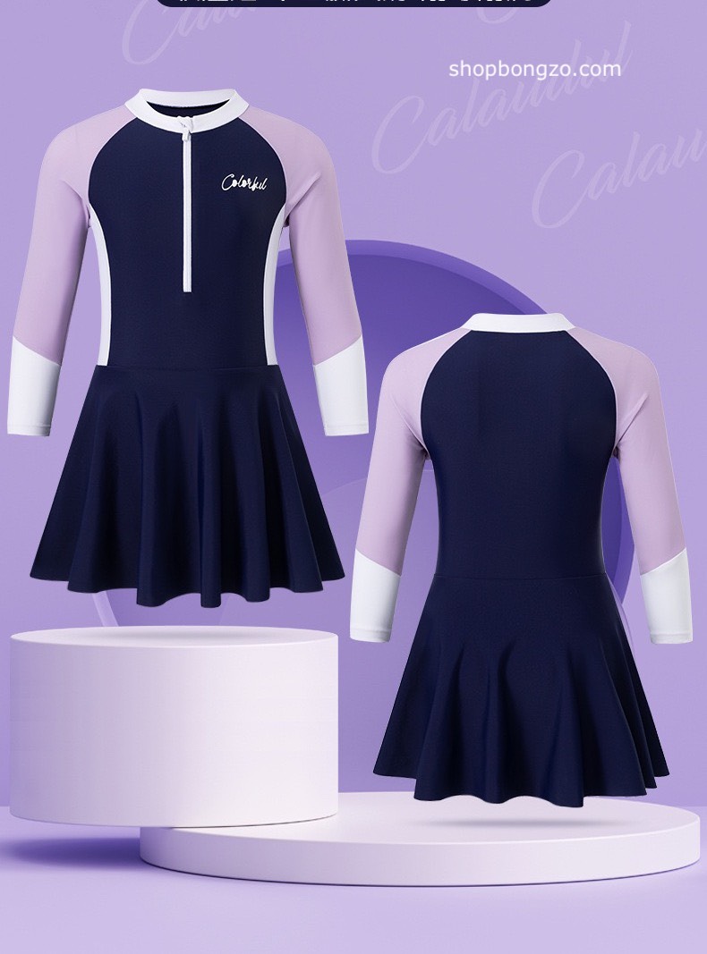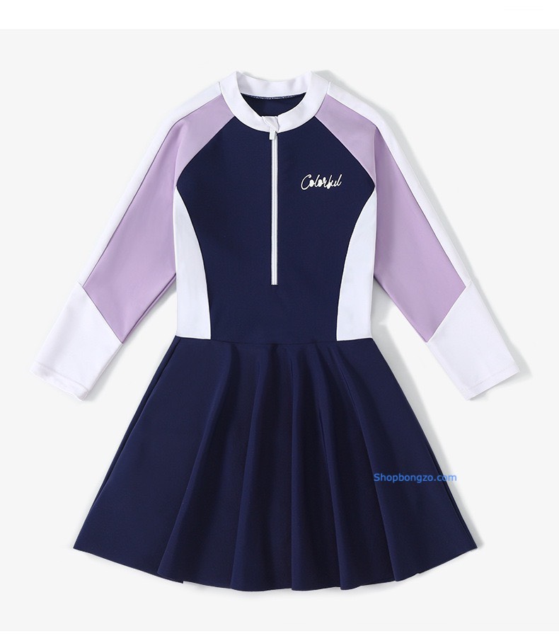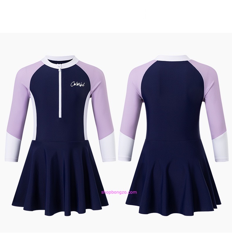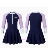 Bộ bơi bé gái dài liền chân váy, than tím, Color, vải cao cấp chống nắng