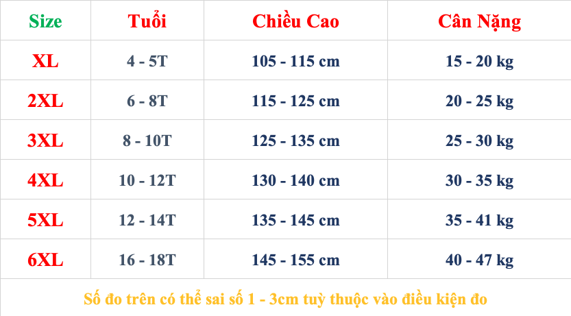 * Bảng size dựa trên thực tế bán hàng, khách trực tiếp qua shop thử đồ.