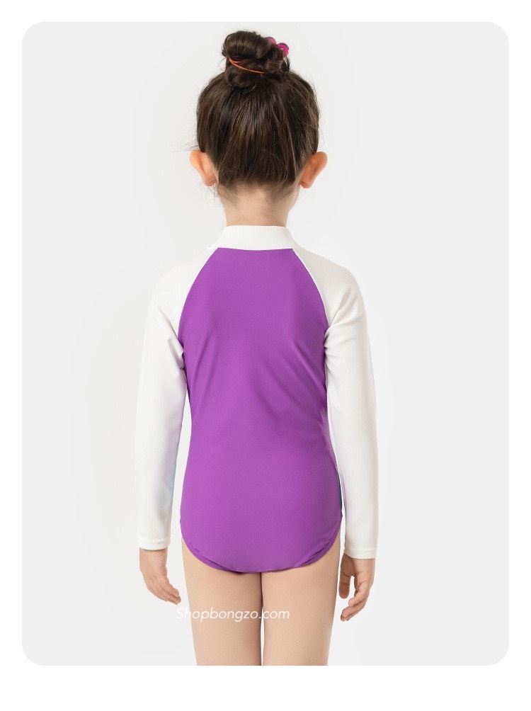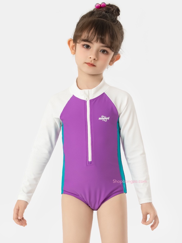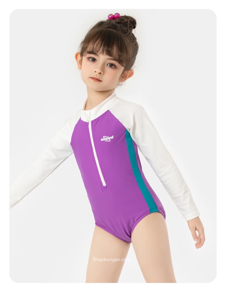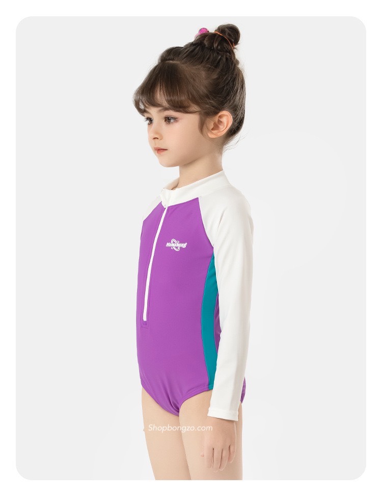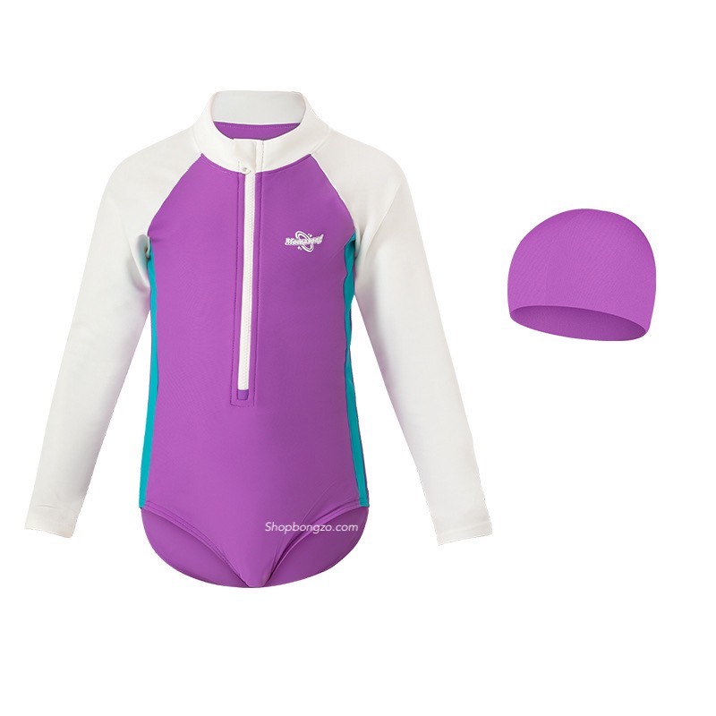 Bộ bơi bé gái dài liền, màu tím, vải bảo vệ da, chống lạnh, hàng cao cấp