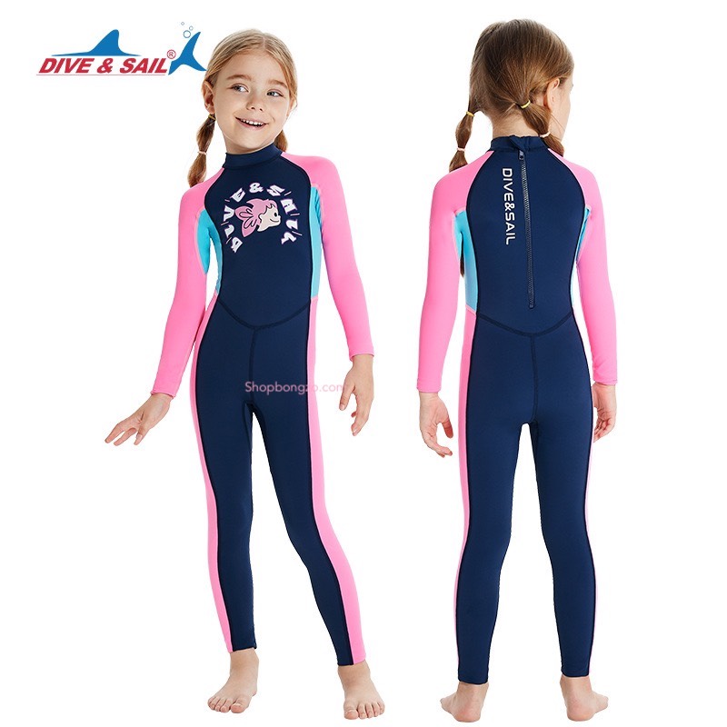 Bộ bơi bé gái dài liền, màu xanh than, hình bé gái, Dive&Sail M153116K