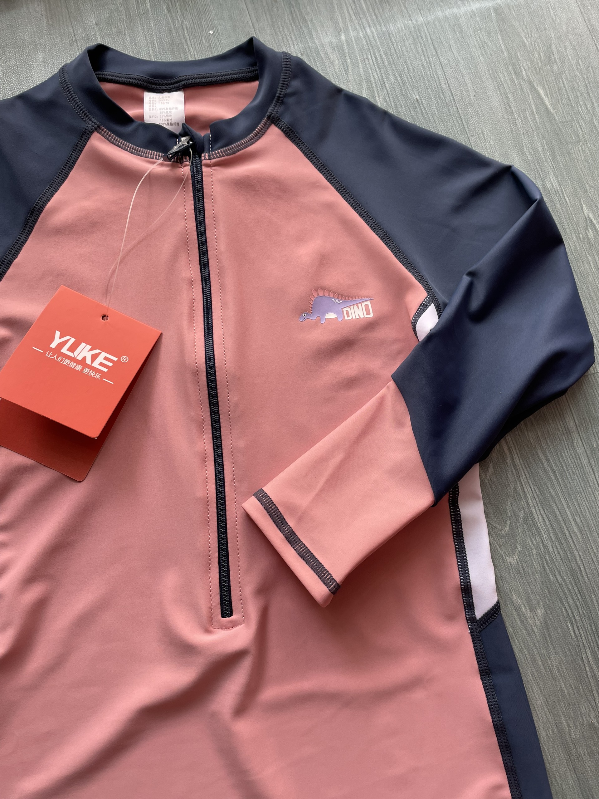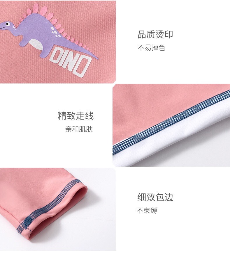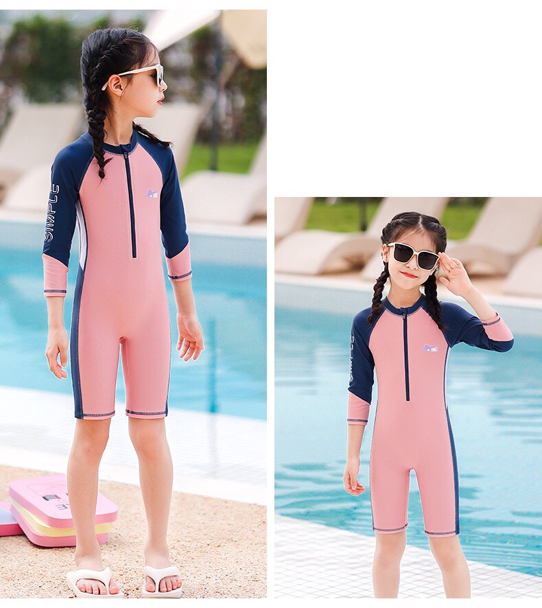 Bộ bơi bé gái dài liền, quần ngắn, màu hồng tay than YUKE 2189-1