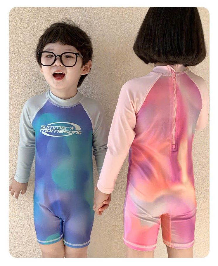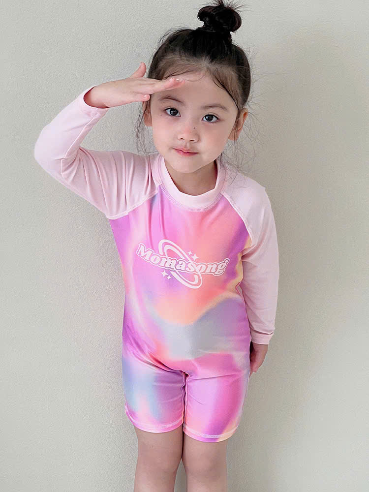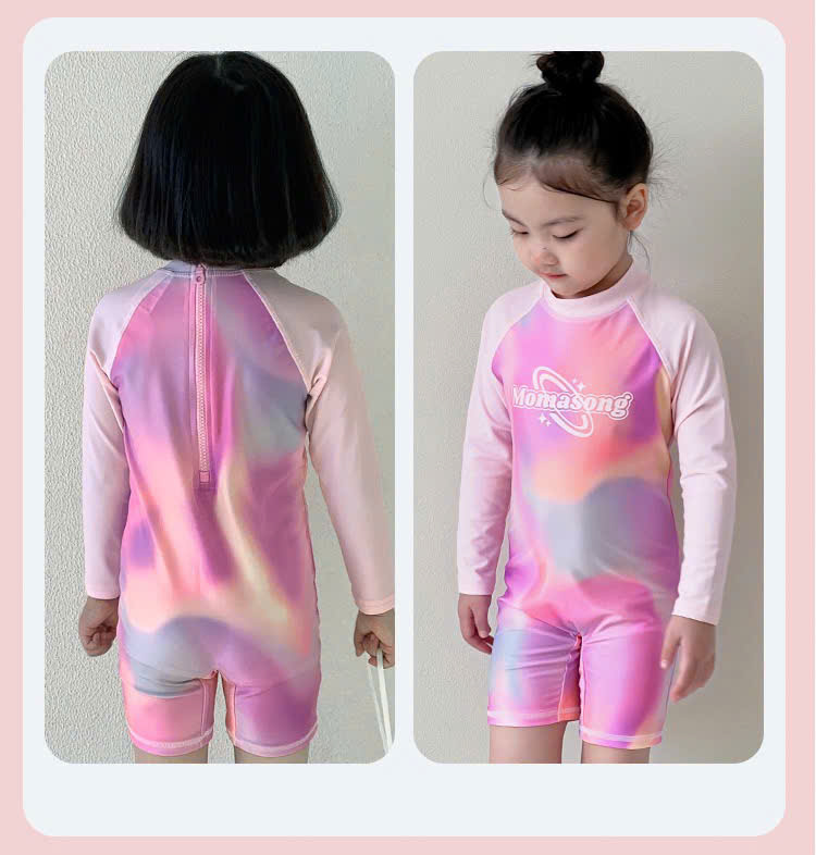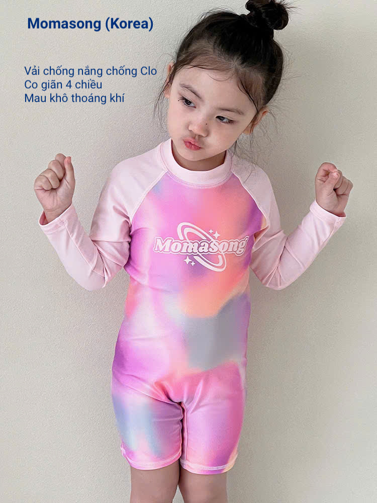 Bộ bơi bé gái dài tay, màu hồng, vải cao cấp chống nắng, Momasong (Korea)