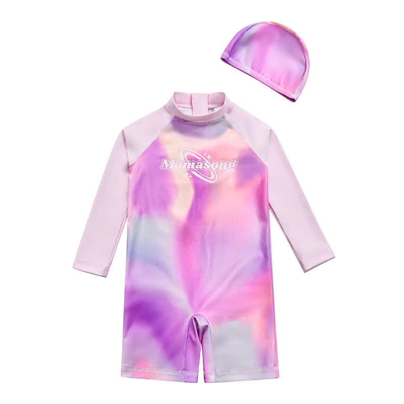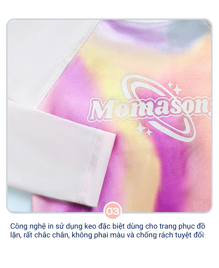 Bộ bơi bé gái dài tay, vải chống nắng UPF 50+ Momasong (Korea), hồng trắng