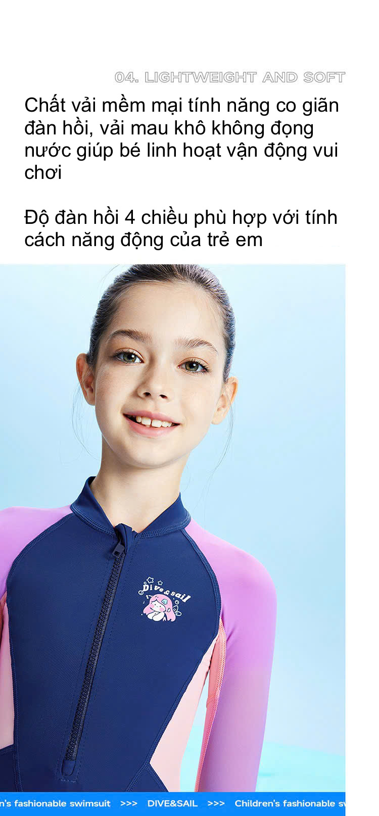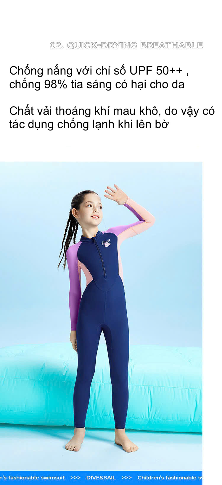 + Chất vải thoáng khí mau khô, do vậy có tác dụng chống lạnh khi lên bờ