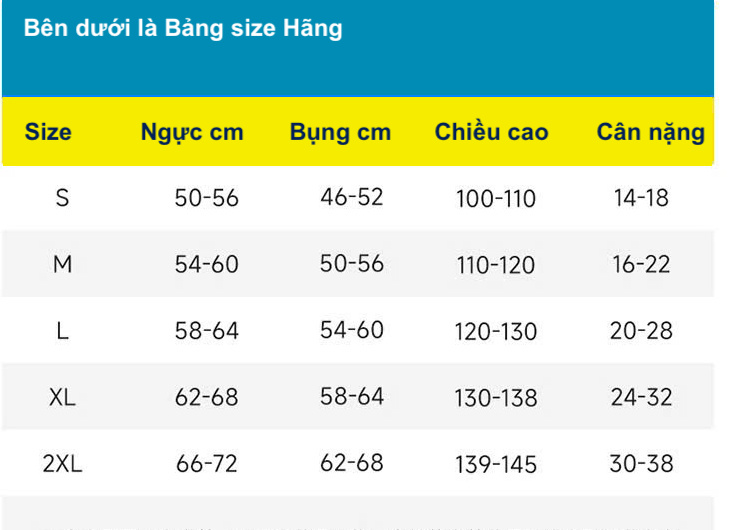 Shop đã điều chỉnh lại cân nặng từng size dựa vào bán hàng thực tế tại shop