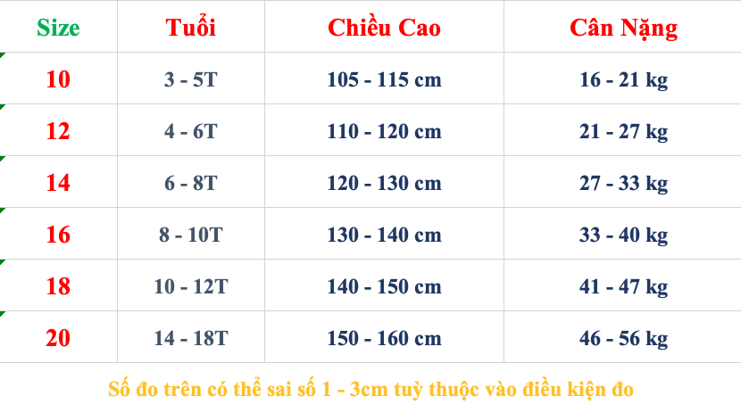 * Bảng size dựa trên thực tế bán hàng, khách trực tiếp qua shop thử đồ.