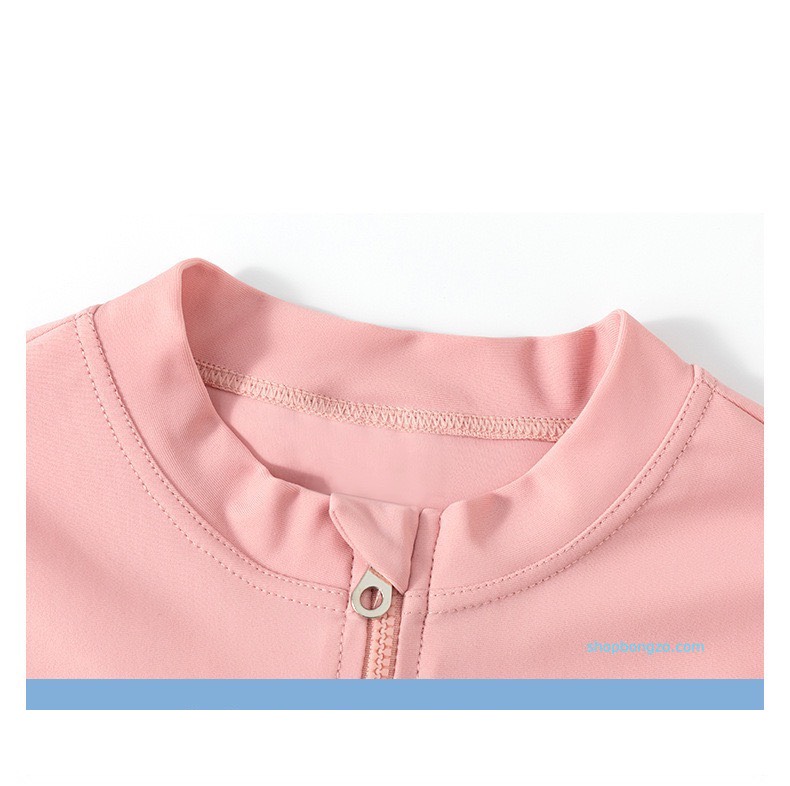 Bộ bơi bé gái dài tay, vải chống nắng UPF 50+ Momasong (Korea), hồng trắng