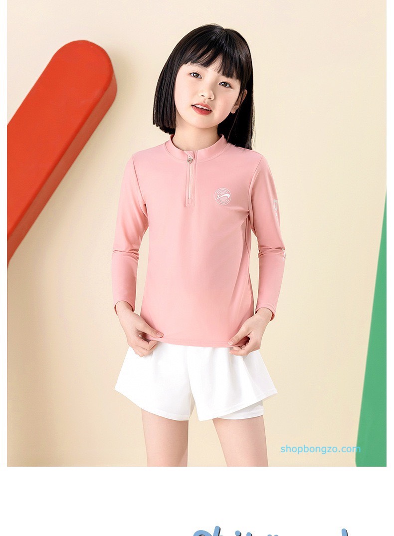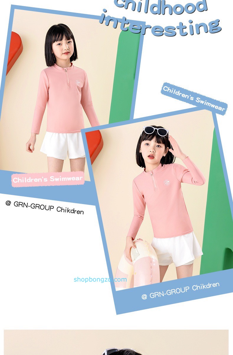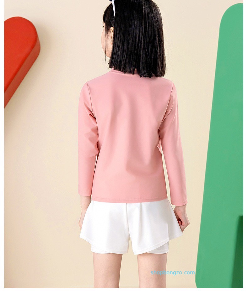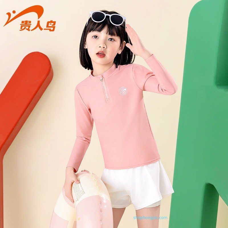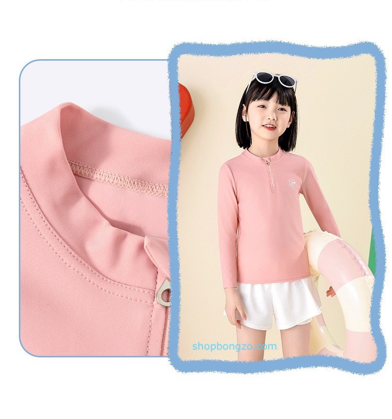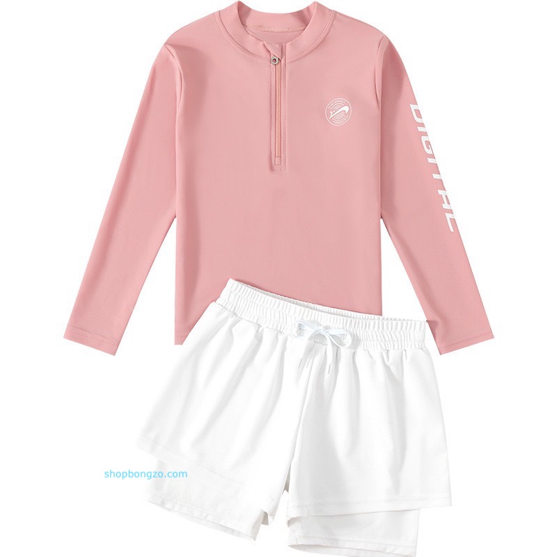 Bộ bơi bé gái dài tay, quần 2 lớp, loại size đại, màu hồng