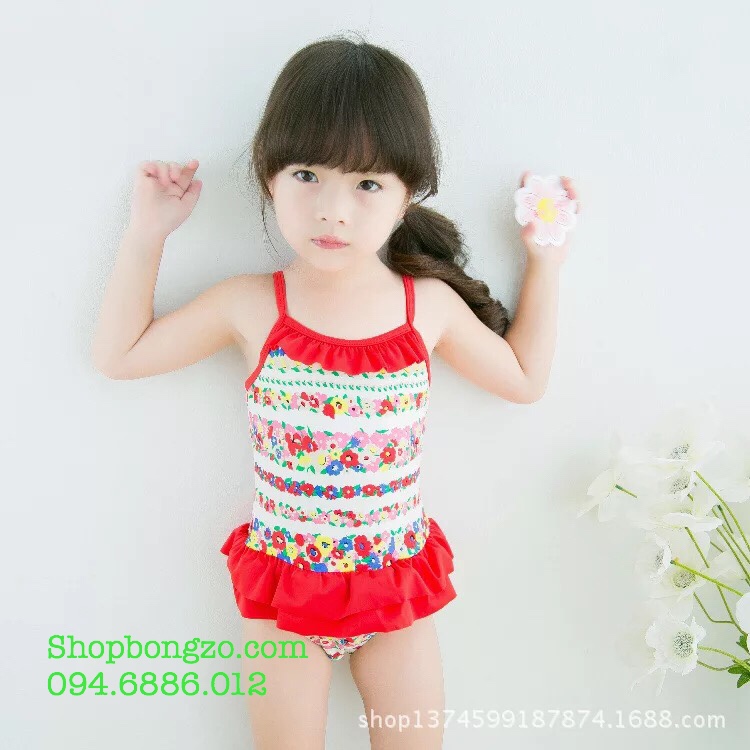 Bộ bơi bé gái Đỏ trắng hoa, 2 dây liền