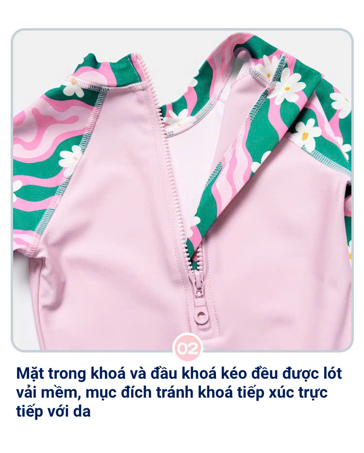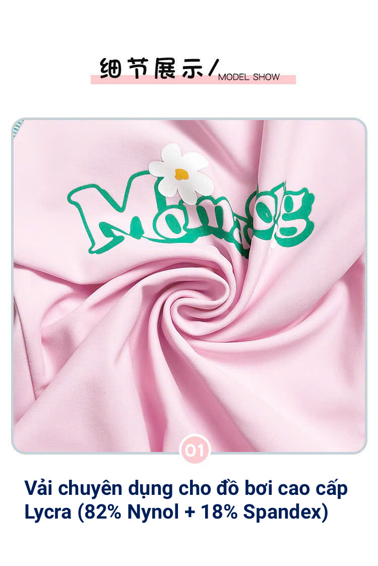 - Vải kháng Clo và kháng khuẩn. Giúp da được bảo vệ tốt hơn khi bơi trong bể.