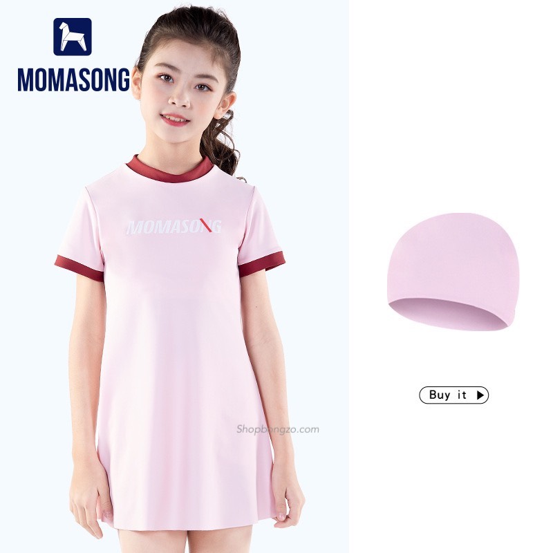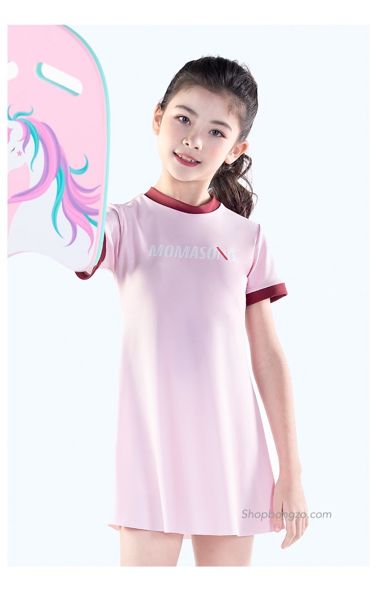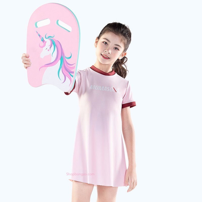 Bộ bơi bé gái dài tay, vải chống nắng UPF 50+ Momasong (Korea), hồng trắng