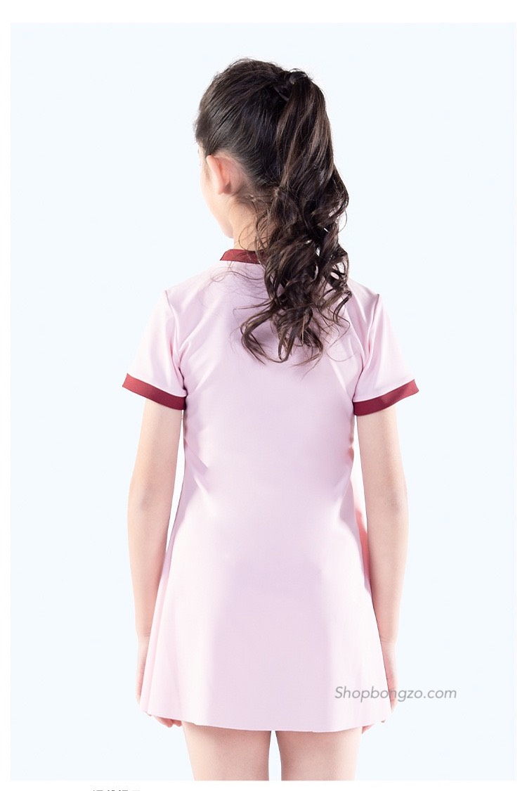 Bộ bơi bé gái liền chân váy, màu hồng, vải chống nắng, kèm quần rời, hàng hãng cao cấp