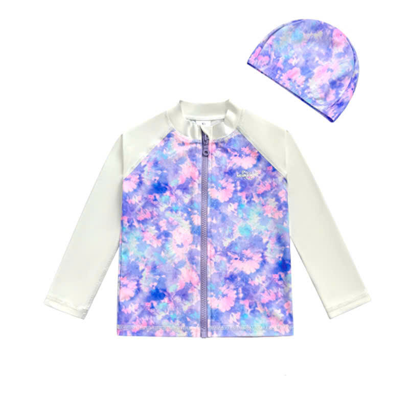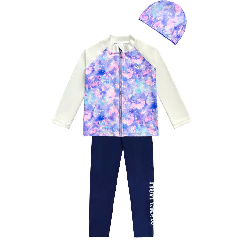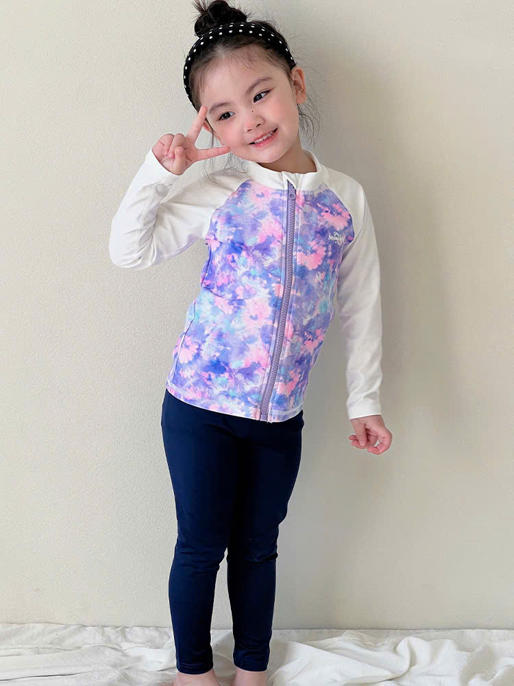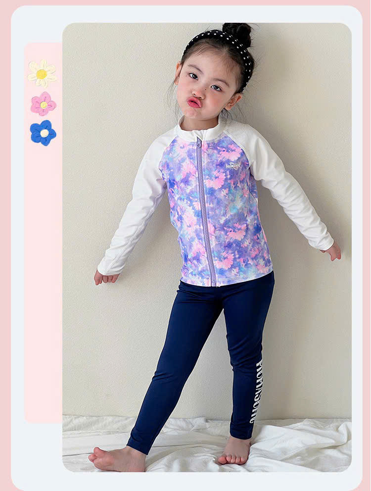 Bộ bơi bé gái màu tím trắng, dài tay kéo khoá, vải UPF 50++, Momasong(Korea)