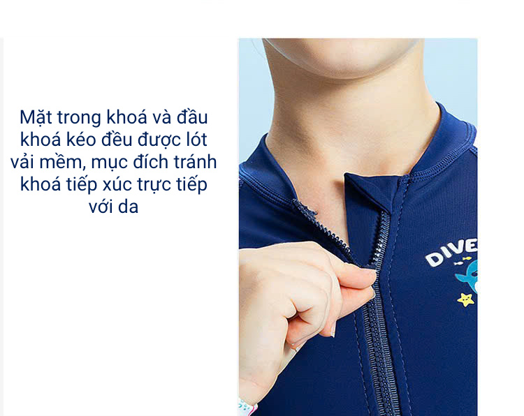 Mặt trong khoá và đầu khoá kéo đều được lót vải mềm, mục đích tránh khoá tiếp xúc trực tiếp với da