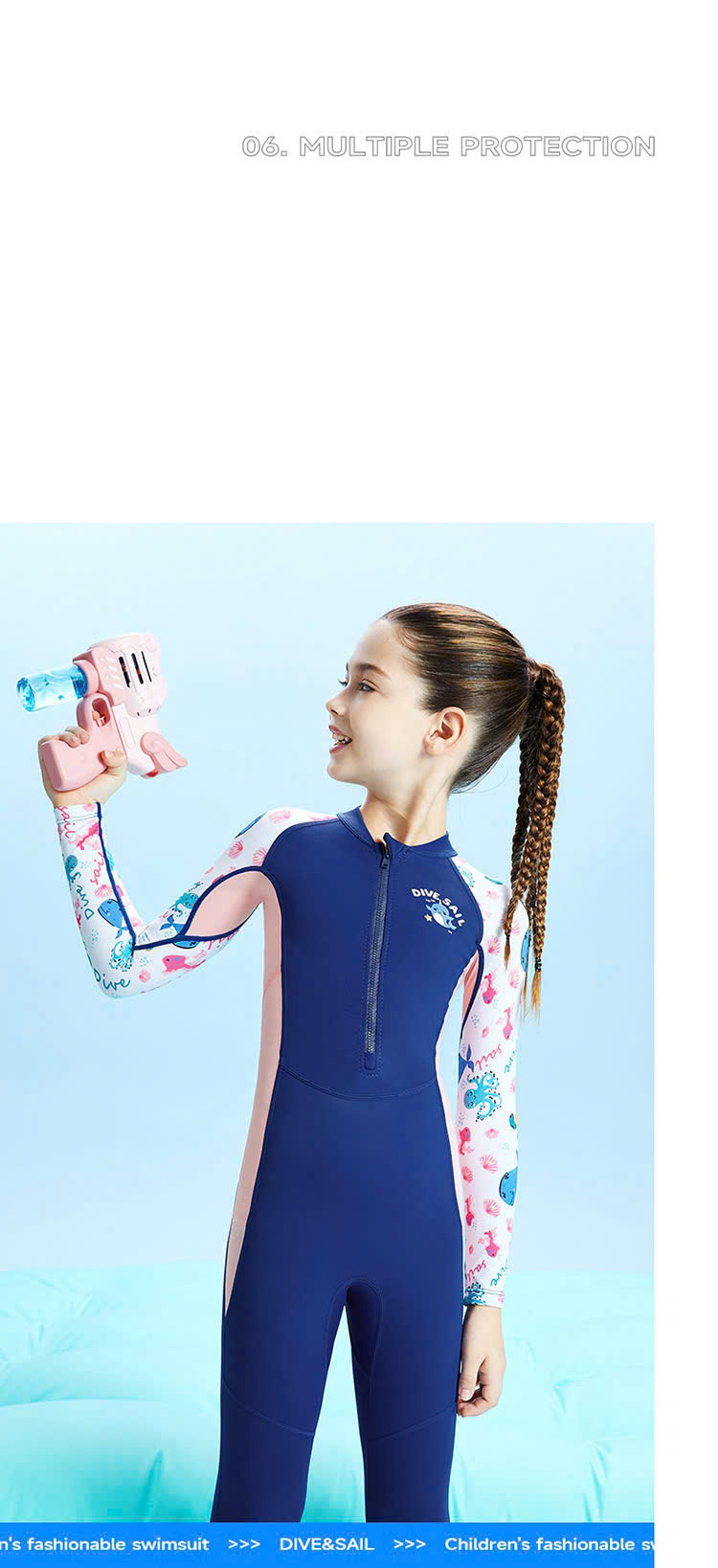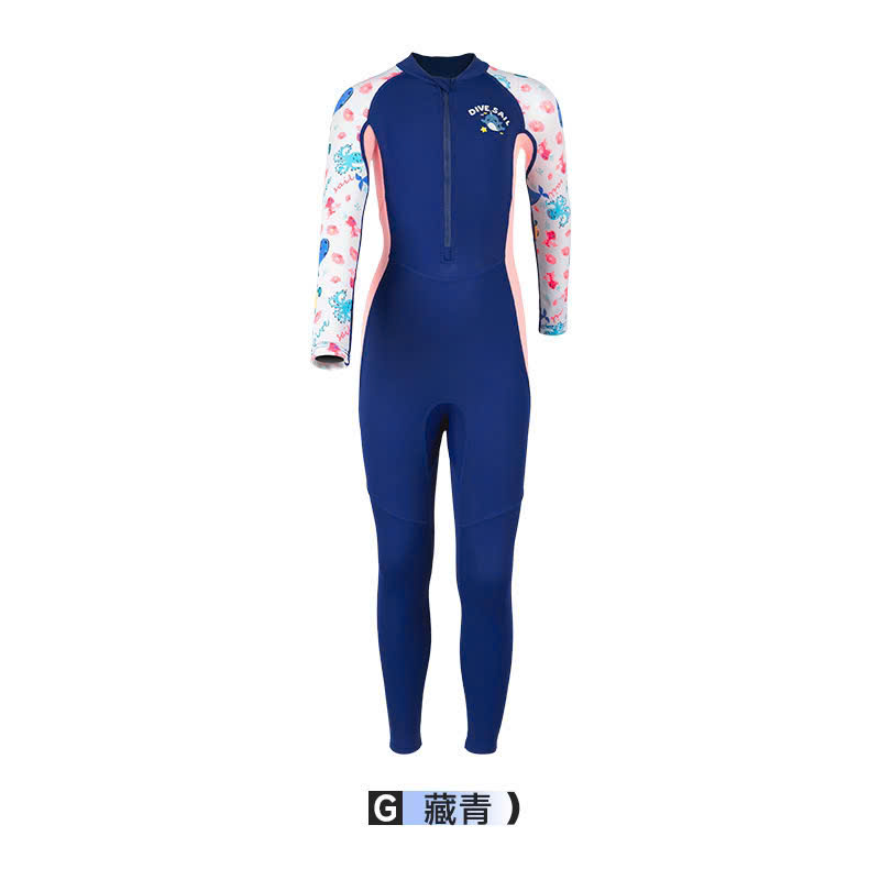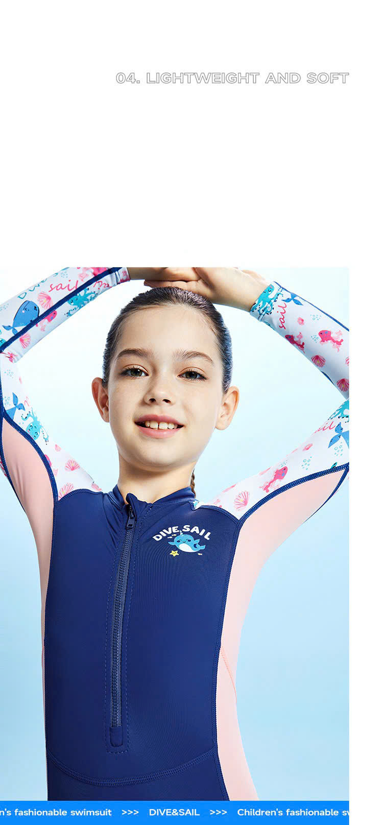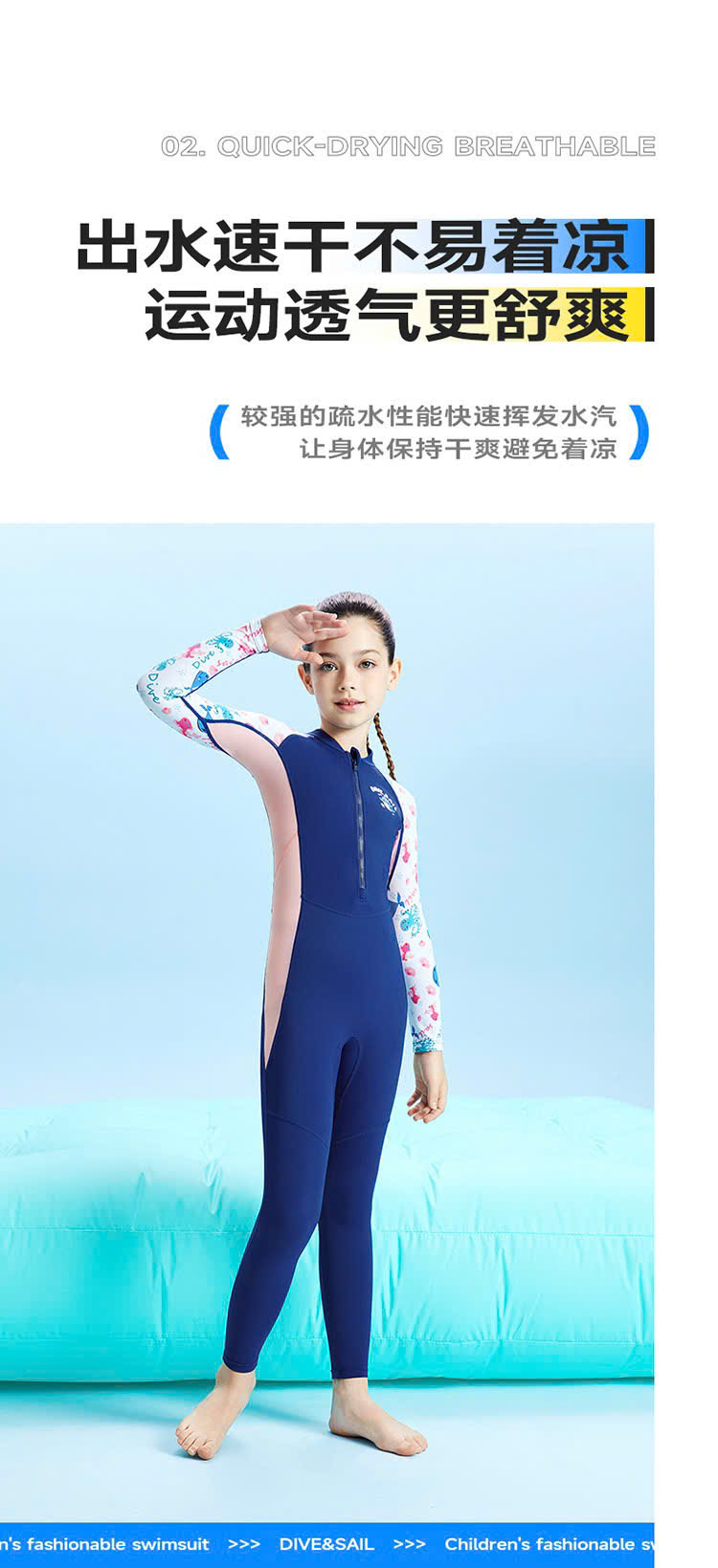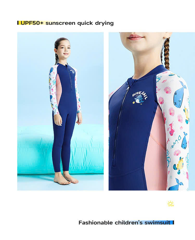 Bộ bơi bé gái, vải chống nắng UPF 50+, kháng Clo, dáng dài liền, màu than tay trắng, Dive&Sail
