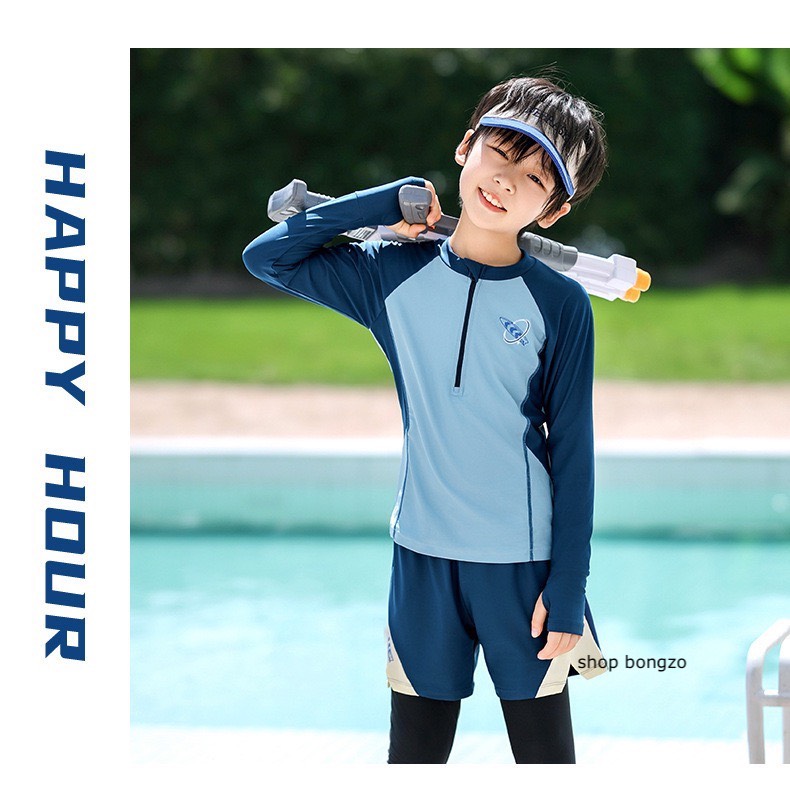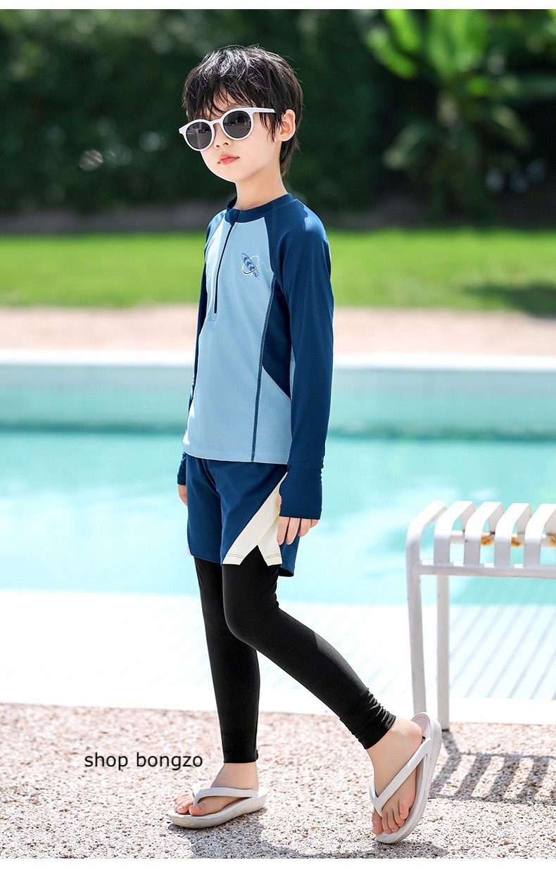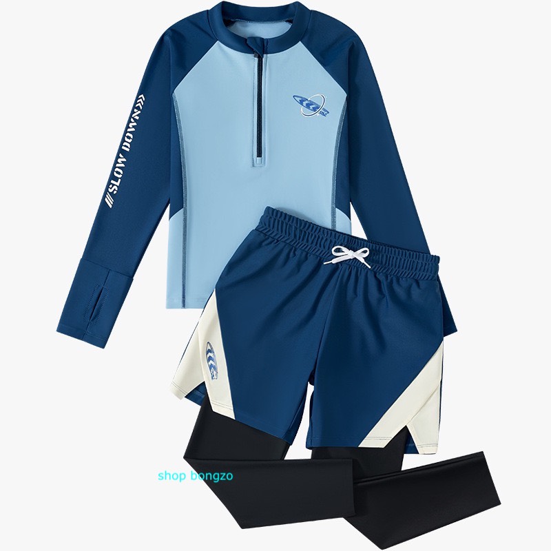 Bộ bơi bé trai chống nắng, màu xanh, dáng quần đôi, Slow Down
