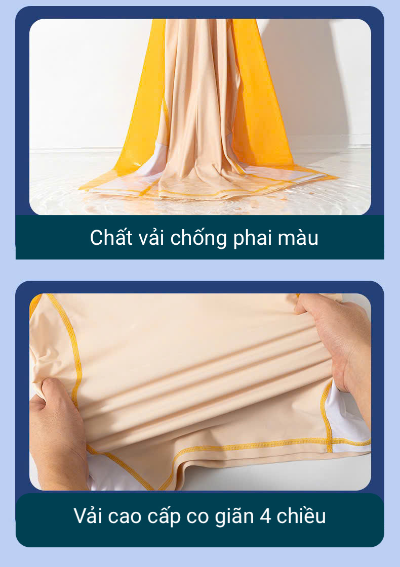 - Vải chuyên dụng cho đồ bơi cao cấp Lycra (82% Nynol + 18% Spandex)
