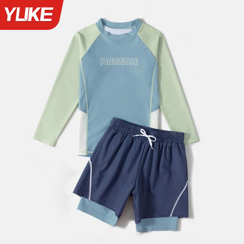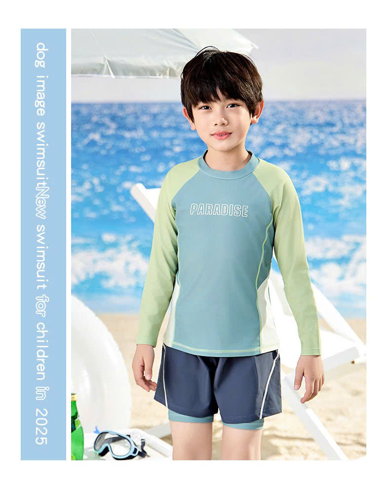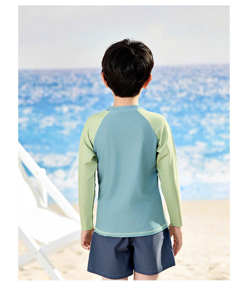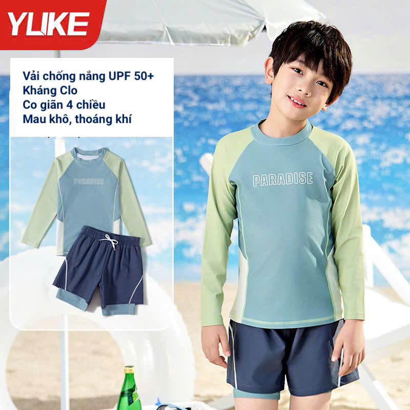 Bộ bơi bé trai chống nắng UPF50+, màu xanh, dài tay, Paradise, YUKE