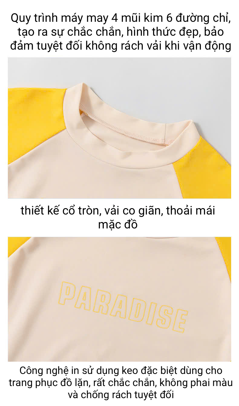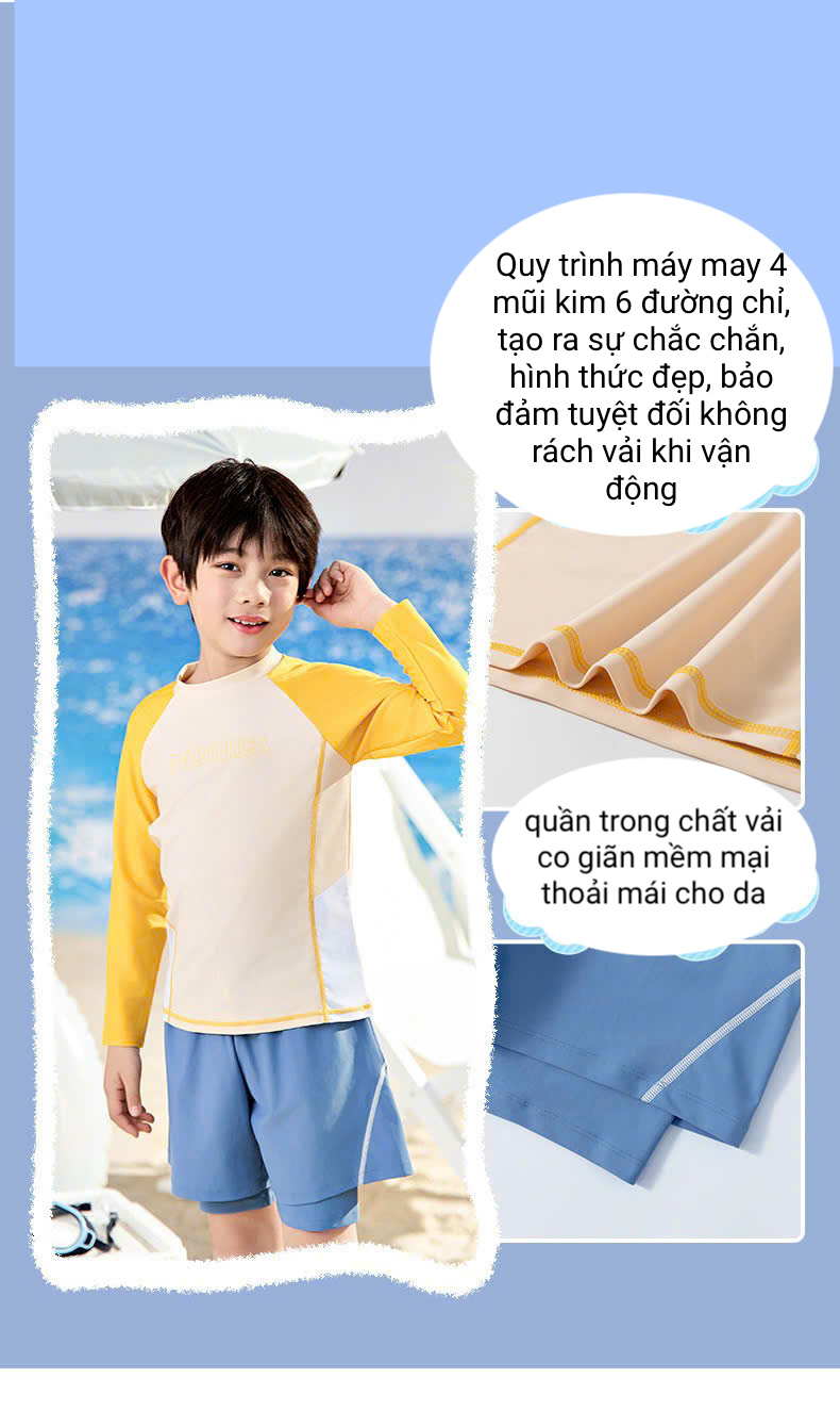 Bộ bơi bé trai chống nắng UPF50+, màu trắng tay vàng, dài tay, Paradise, YUKE